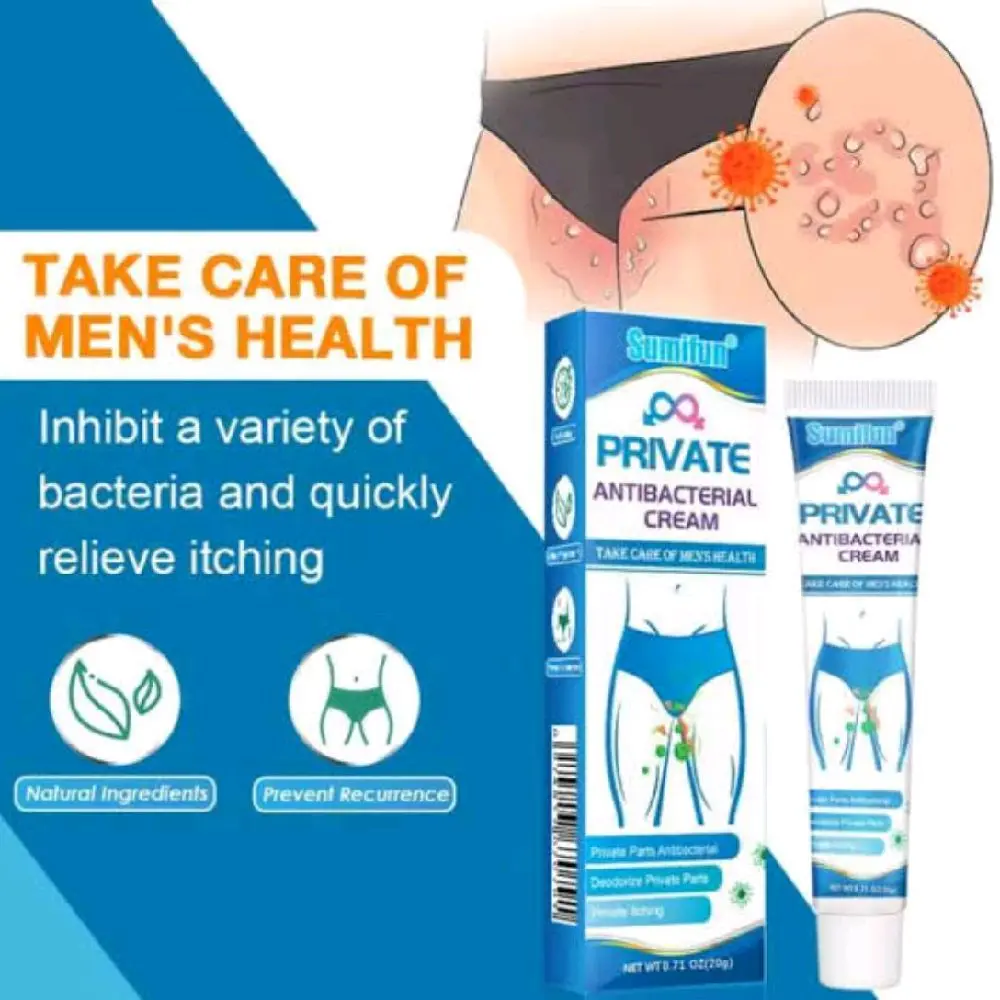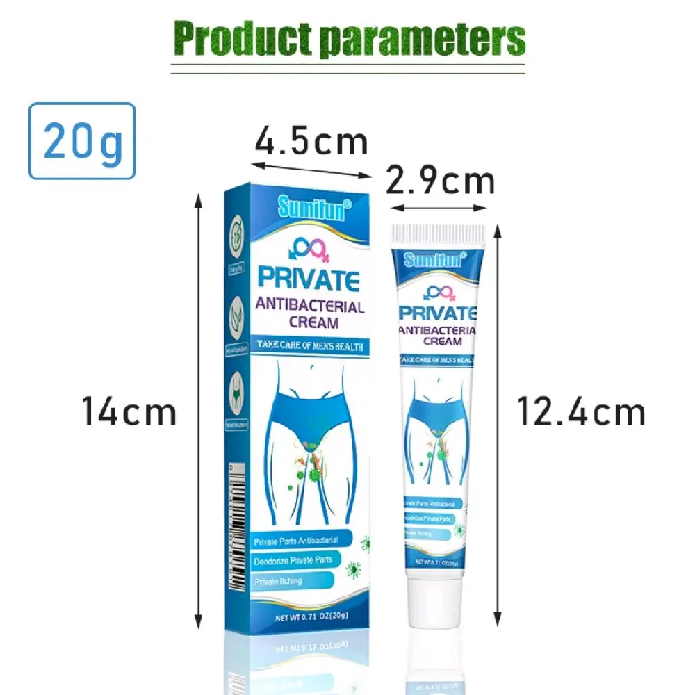 Private Antibacterial Cream adalah krim gatal yang cocok untuk kulit gatal dan area tidak menyenangkan lainnya. Krim ini memiliki ukuran 20g dan dapat diuji area kulit sebelum digunakan untuk memastikan tidak terjadi ketidaknyamanan. Ukuran kecil dan portabel memudahkan penggunaan saat bepergian atau membawa.