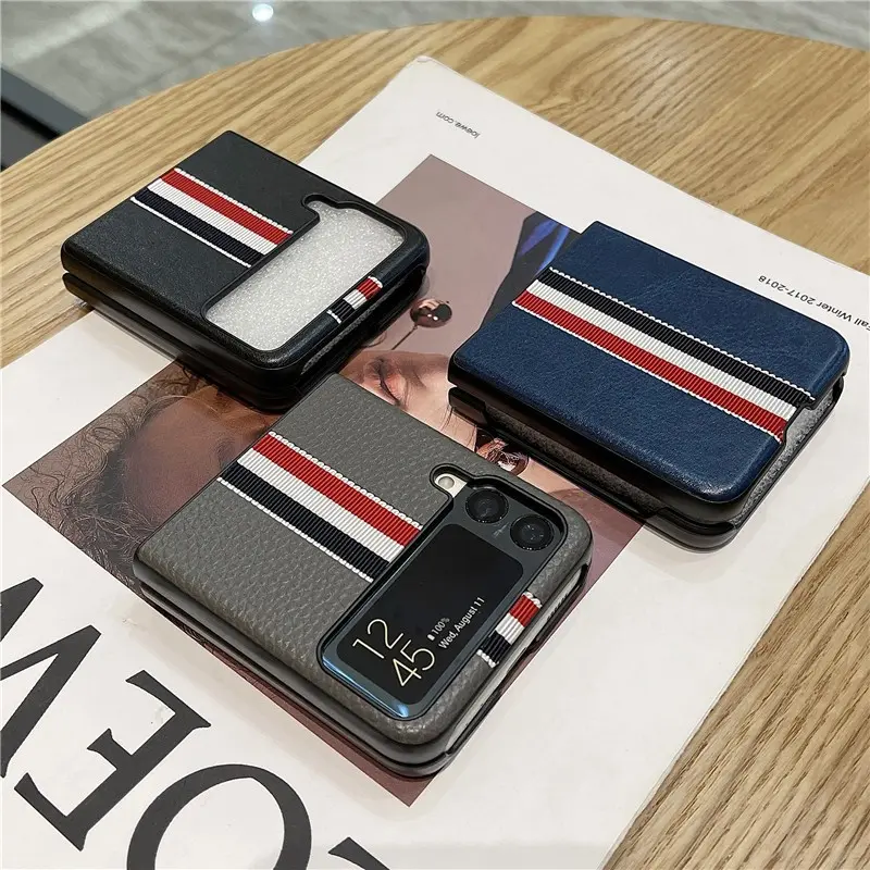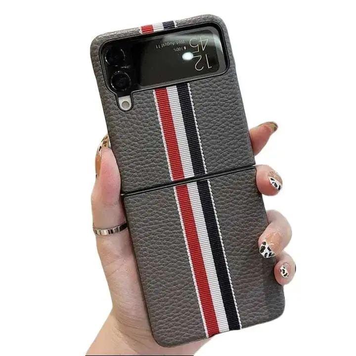 Hard Case Leather Stripe untuk Samsung Z Flip 3 / Z Flip 4 / Z Flip 5 / Z Fold 3 / Z Fold 4 / Z Fold 5 Cover Casing