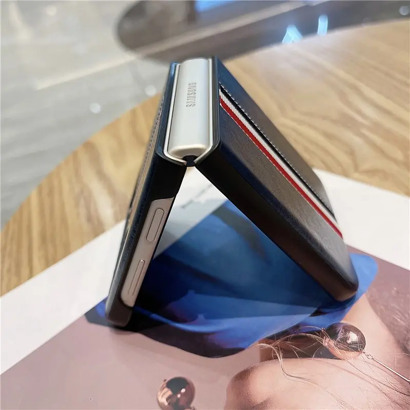 5. Hard Case Leather Stripe untuk Samsung Z Flip 3 / Z Flip 4 / Z Flip 5 / Z Fold 3 / Z Fold 4 / Z Fold 5 Cover Casing