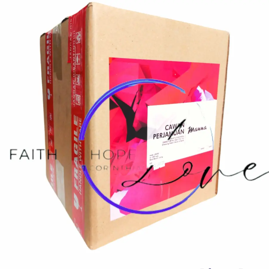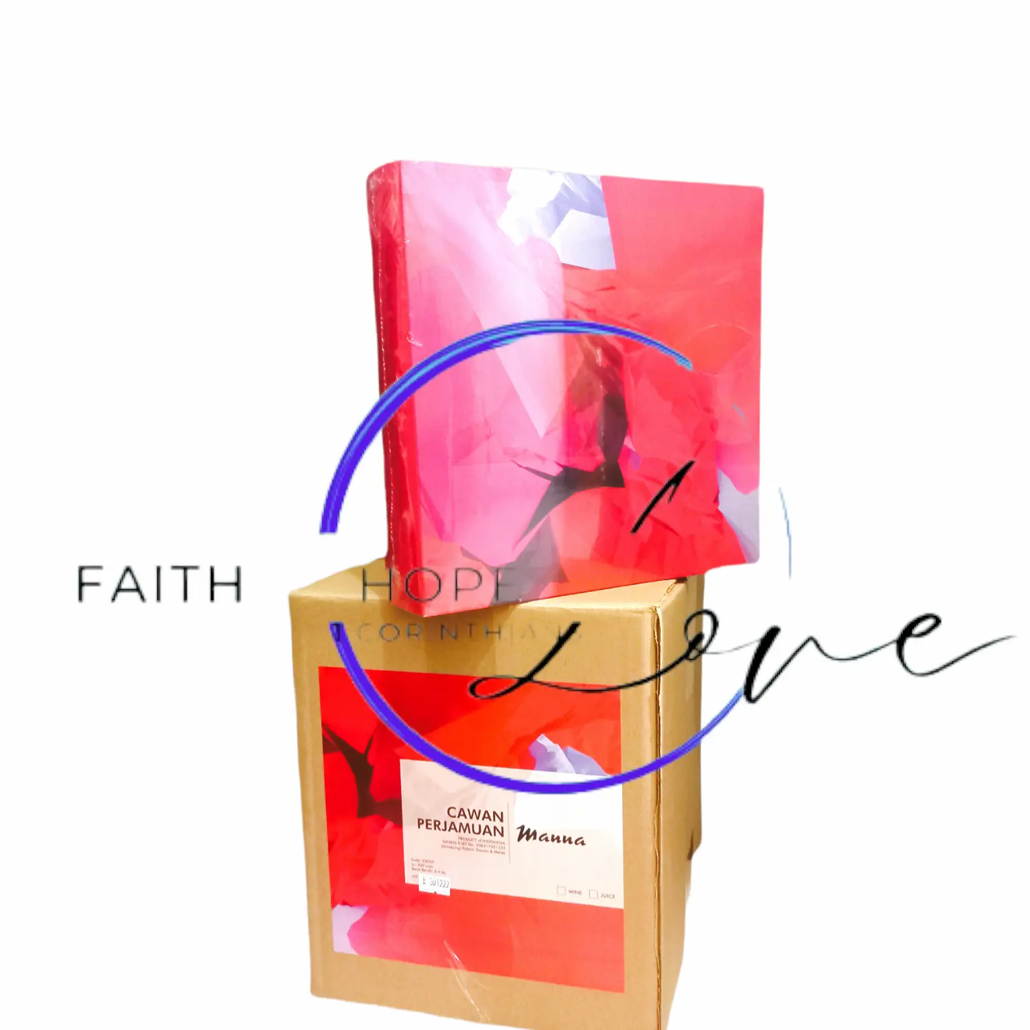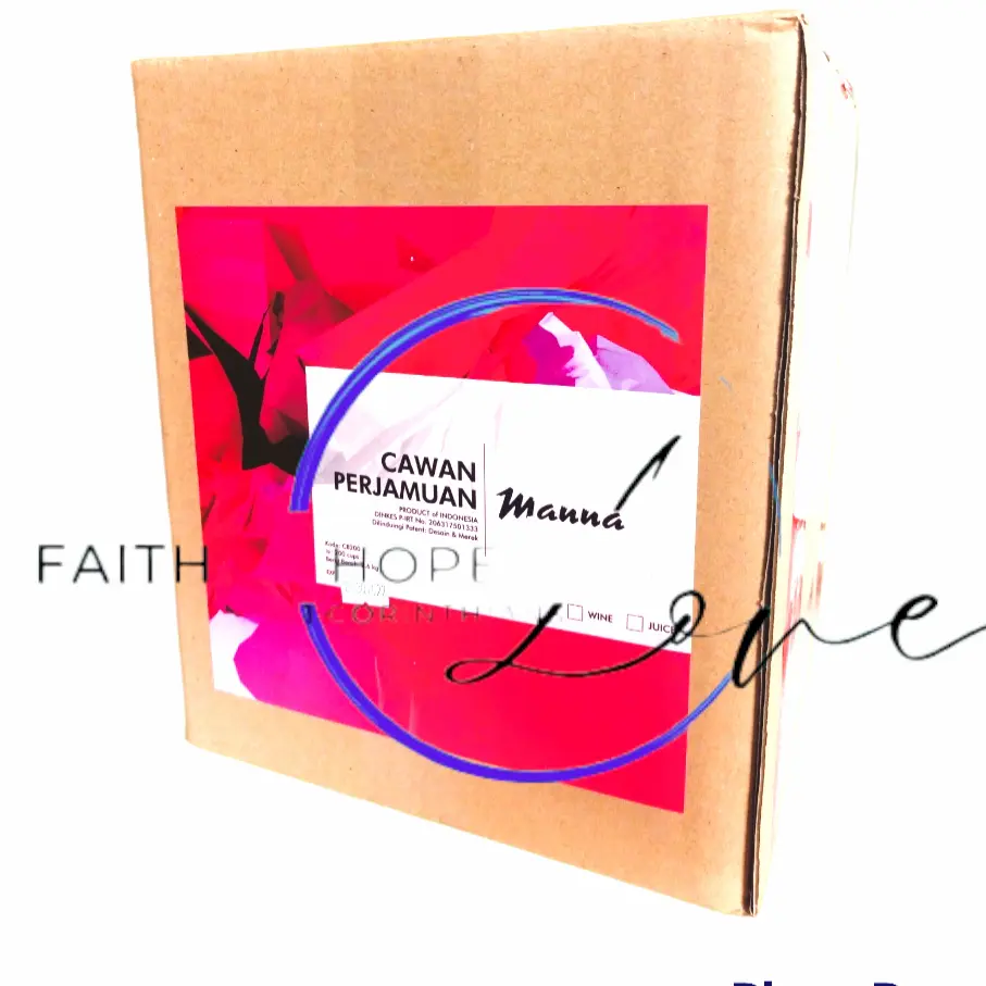 Hosti ayat perjamuan kudus merk : MANNA ukuran 5 cm Krispy beserta Anggur Perjamuan Kudus dalam 1 cup dalam kemasan khusus. Kadar alkohol +/- 2%. ISI : 200cup Anggur cup + Hosti Ayat 5 cm Satu Cup terdiri atas Hosti ayat bagian atas ukuran 5 cm, dan anggur bagian bawah, disekat dengan plastik. Dengan tulisan Ayat yang berbeda-beda. Ukuran diameter 5 cm. 1 Cup isi 1 Hosti Ayat + Anggur Bahan tulisan menggunakan coklat dan sangat aman untuk dikonsumsi. READY STOCK, Stock Baru, kami selalu restock , jadi stok kami selalu baru. Tersedia kemasan Hosti ayat + Anggur cup :50 / 100 / 150 / 200cup.