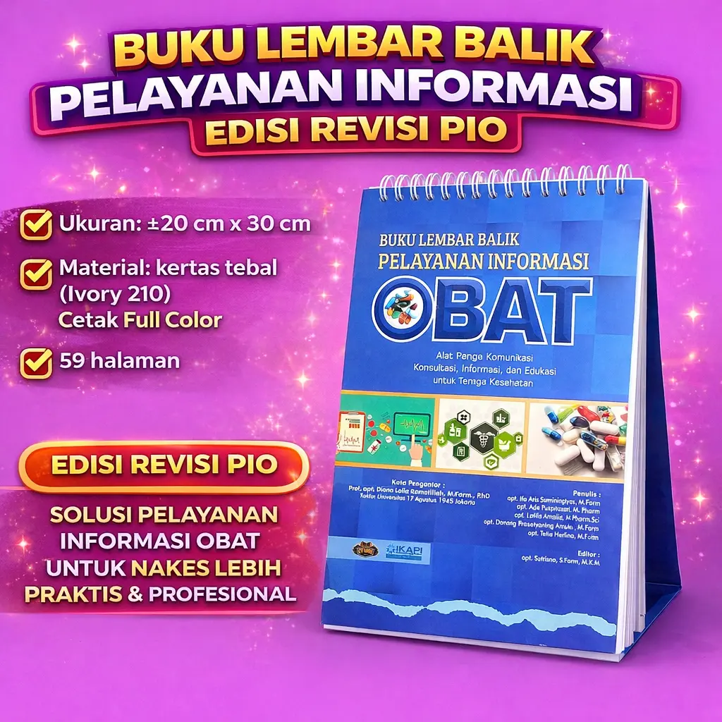 Ketersediaan Lembar Balik PIO menjadi perangkat edukasi yang penting dalam praktek kefarmasian di fasyankes, baik itu puskesmas, klinik maupun RS. Kami telah riset dan publish kebutuhan media promkes dalam bentuk lembar balik edukatif yang akan menjadikan praktek kefarmasian menjadi mudah dan menyenangkan.