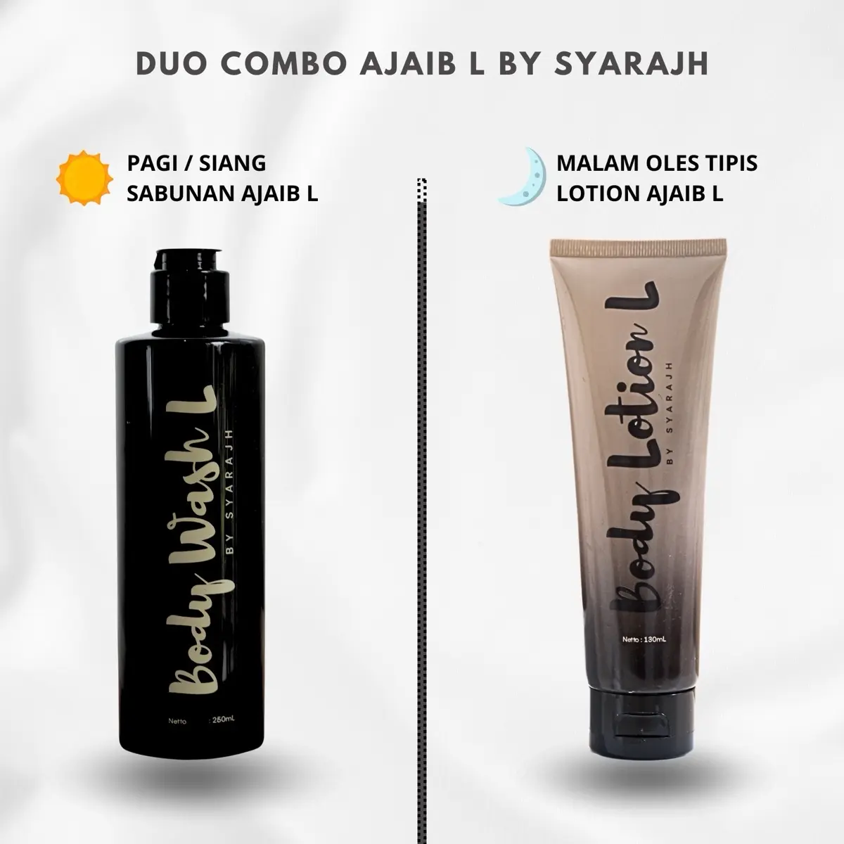 ( PAKET AJAIB L ) DOSIS TERBARU BODY WASH AJAIB L & LOTION AJAIB L Memudarkan Mencerahkan