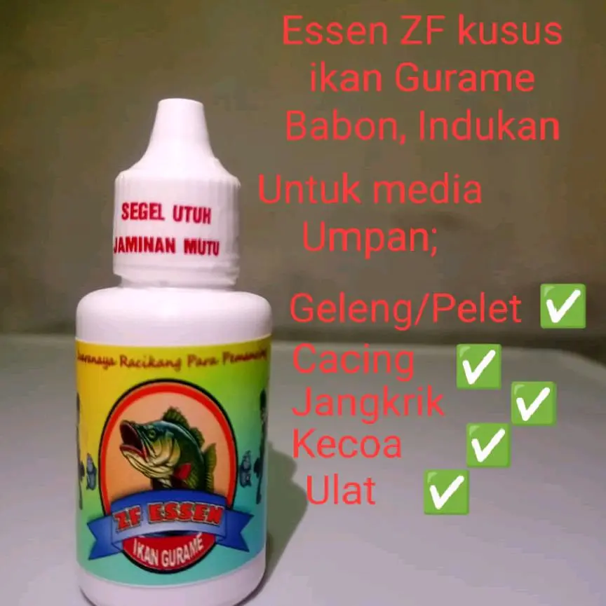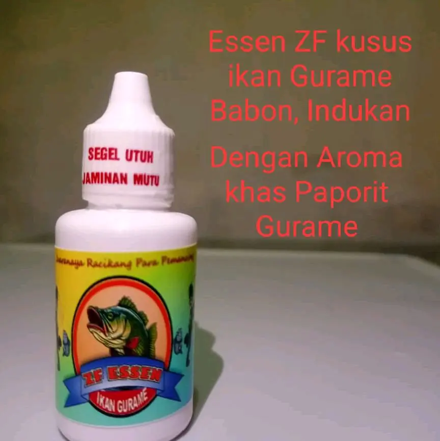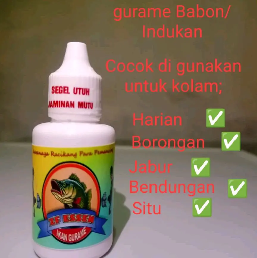 Essen ikan Gurame/babon, indukan kualitas premium adalah produk perangsang ikan yang diracik khusus menggunakan bahan bahan murni berkualitas. Produk ini diracik khusus untuk ikan Gurame terutama ikan Gurame/babon. Bahan bahannya murni berkualitas, seperti aroma biang, amisan, serta ditambah bahan bahan racikan lainnya.