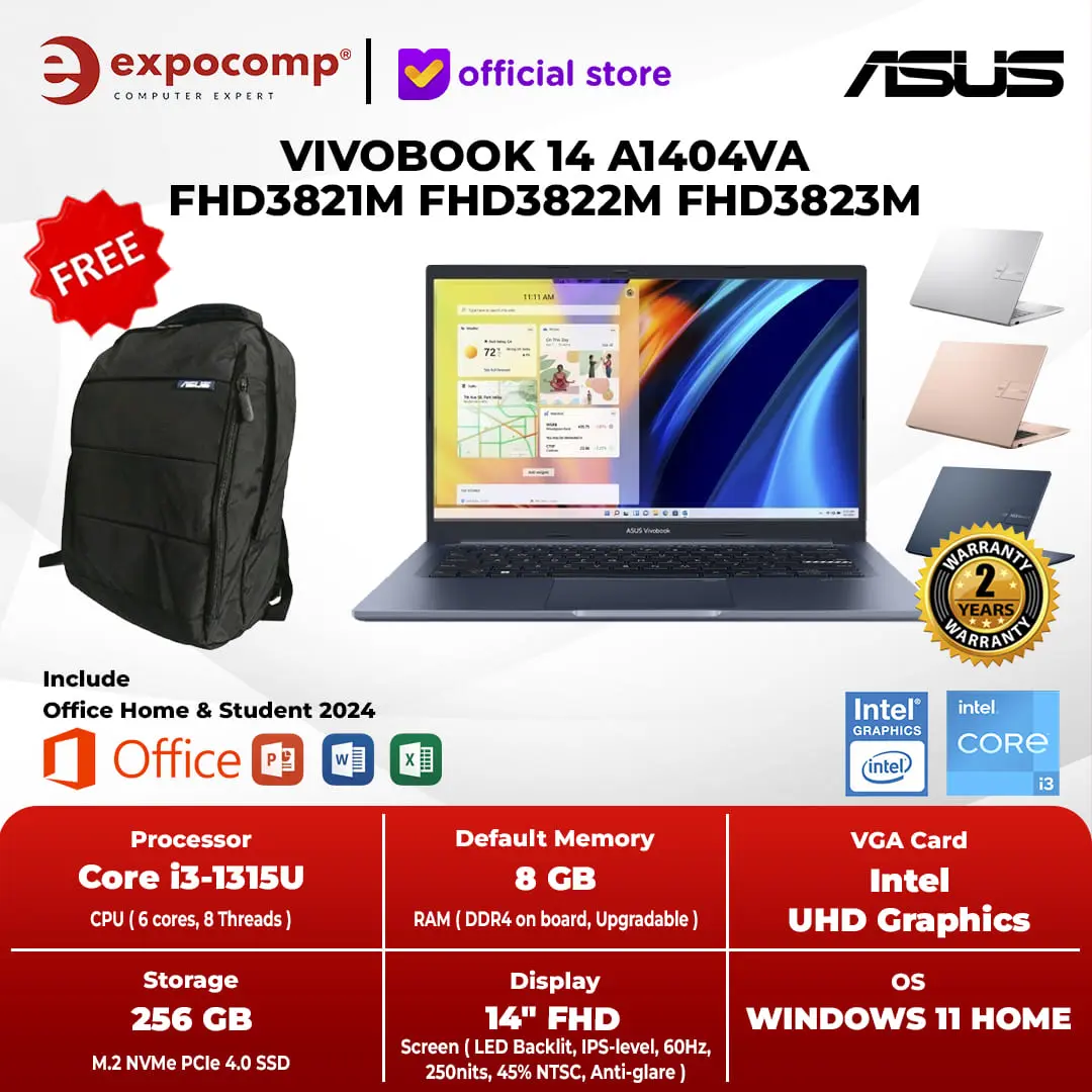Type : ASUS VIVOBOOK 14 A1404VA FHD3821M FHD3822M FHD3823M INTEL CORE i3-1315U 8GB 256GB WIN 11 + OH 2024
