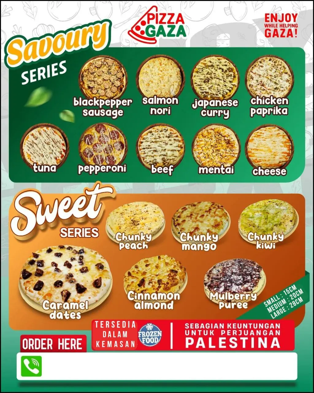 Enjoy delicious pizza while helping Gaza, sebagian dari keuntungan Pizza Gaza untuk membantu saudara-saudara kita disana melalui Global Aid Sodaqo.