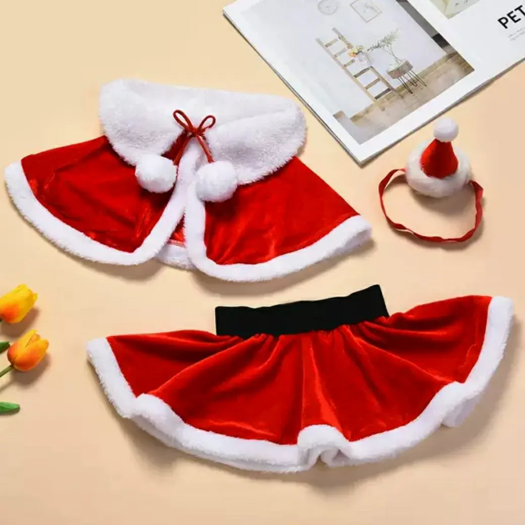 5. Baby girl Santa costume set 3 in 1 Baby christmas costume Santa cape