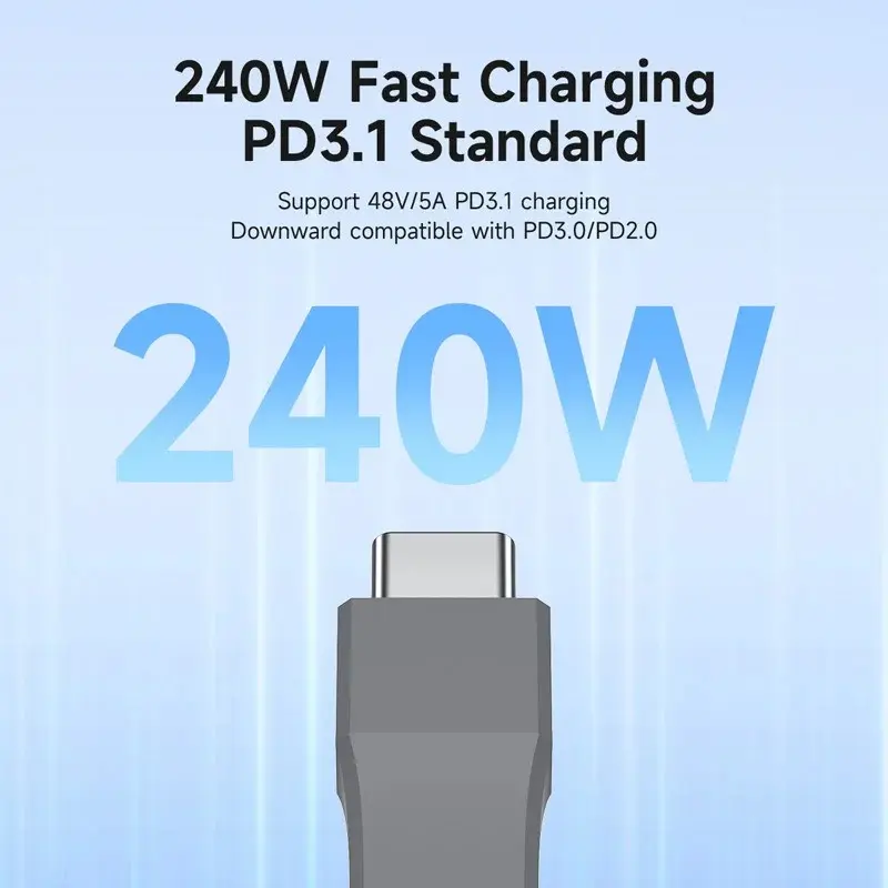 Unique Structural: Our short C to C cable uses FPC (Flexible Printed Circuit) inside which makes the cable more durable and flexible than other similar items in the market. The short design saves more space. PD High-Speed Charging: Built-in E-marker chip, PD 3.1 standard supports 240W fast charging, while it is backward compatible with PD3.0 and 2.0 protocols,Supports high power output of up to 48V5A. 40Gbps Data Transfer and 8K Video Output: Compared with USB 3.0 (5Gbps), This cable has an incredible increase in data transfer speed.It can also support video transmission at up to 8K 60Hz and is backward compatible with 4K.Note: Your device needs to support DP video transmission protocol Travel-Friendly Design: Its ultra-slim design and shorter cable length (5 inches / 13 cm) is perfect for power bank, Type-C hard drives,SSD and cameras, in the office or on-the-go. Universal Compatibility: Compatible with Widely compatible with most of the devices on the market.Available for data transfer, fast charging, and 8K video output(Please make sure the devices of USB C port support DP Alt Mode )