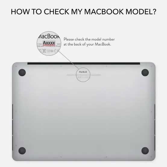 - Kode MODEL Macbook dapat dilihat di bagian belakang (bawah) macbook, terdapat tulisan kecil-kecil. Dimulai dr huruf A dan diikutin dgn 4 angka.