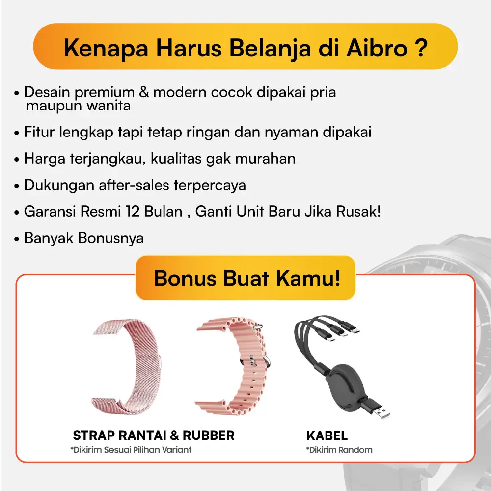 Temukan keajaiban AIBRO MW68 dengan IPX67 Water resistance. Layar 1.85 Inch HD dan baterai 180 Mah. Apk Ferefit. Di dalam kotak: Straps 3, charger wireless, jam. Fitur Basic: Penunjuk Waktu, Notifikasi, Fitness Tracker, Heart Rate Monitor, Sleep Monitor, Sports Mode, Alarm & Reminder, Kontrol Musik, Find My Phone, Calendar Sync, Stopwatch & Timer, Camera Shutter, Music Alarm, Latihan Pernapasan, Kalkulator, Cuaca, Catatan, Raise to Wake, AOD, Game, Drainase Suara, Termometer, Kartu Bisnis Digital.