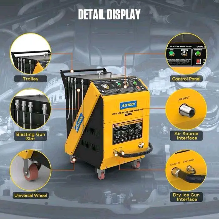 AUTOOL HTS708 adalah mesin pembersihan modern tanpa bahan kimia, tanpa merusak permukaan, dan tanpa perlu membongkar komponen. Menggunakan teknologi dry ice blasting, mesin ini mampu menghilangkan karbon, oli, grease, jamur, karat ringan, debu industri, hingga residu lengket dengan cepat dan aman.