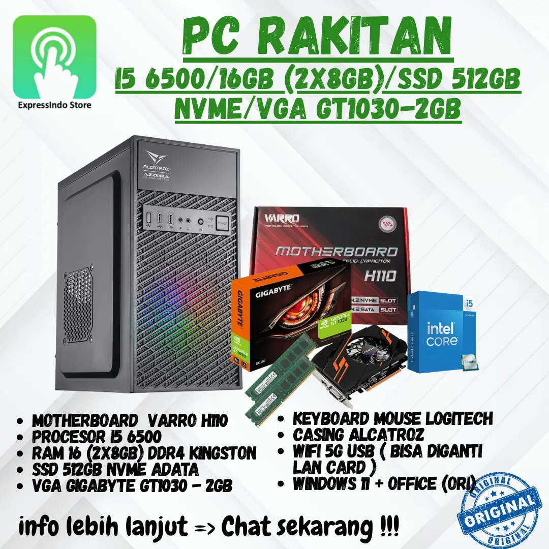 Ketentuan Produk : - Cek stok dulu ya sebelum diorder - Spek PC ini boleh diubah sesuai keinginan kalian - 100% Baru & Original (bukan bekas atau second) - Garansi Resmi Distributor Indonesia - Packaging AMAN Siap KIRIM seluruh Indonesia Spesifikasi: Motherboard varro H110 Procecor i5 6500 Ssd 512Gb NVME adata Ram 16Gb (2x8Gb) DDR4 kingston