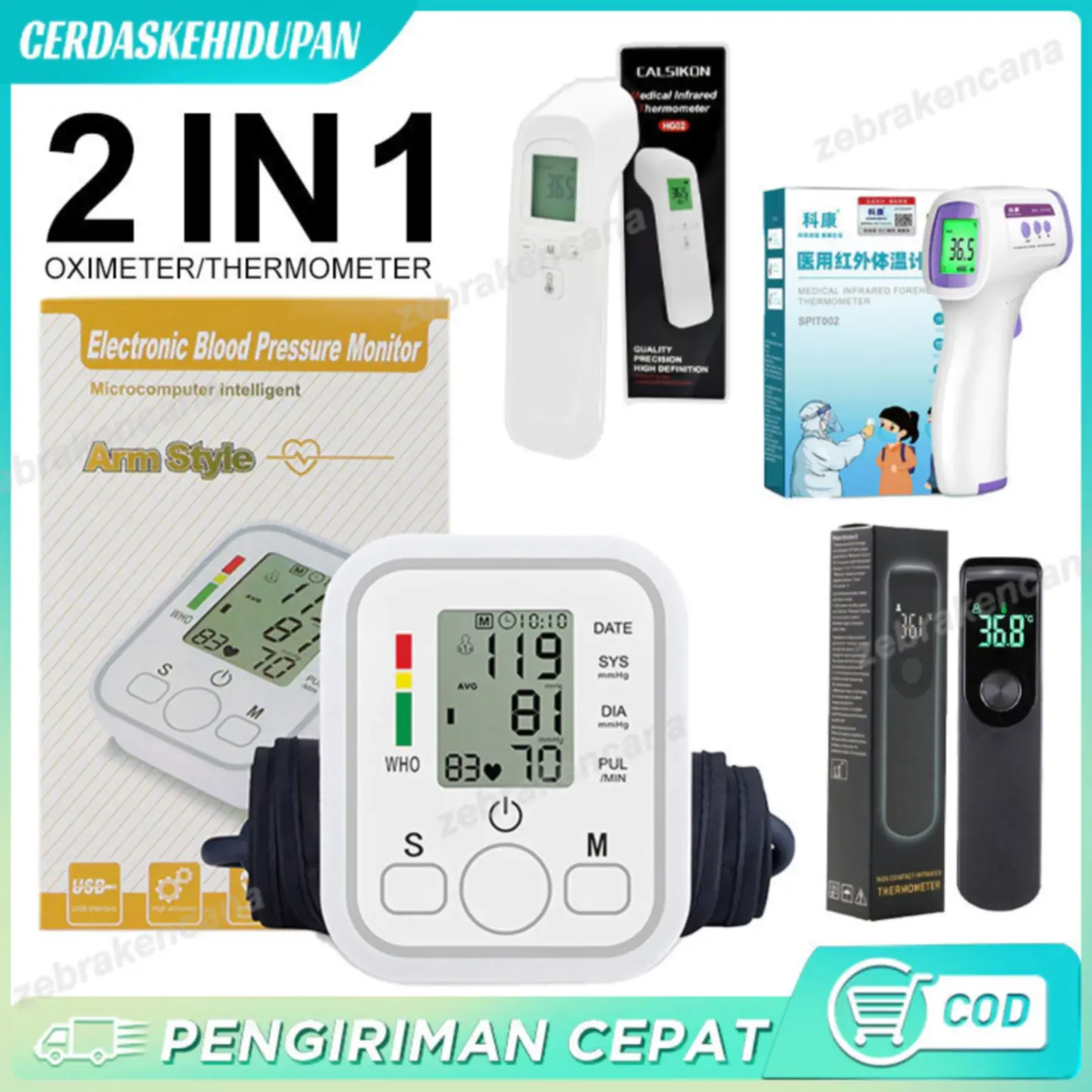 Set Termometer Paket Lengkap Alat Kesehatan 2 In 1 Siaran suara Alat Cek Pengukur Tekanan Pengukur pemantau Tekanan cektensi Darah Digital tensimeterSphygmomanometer