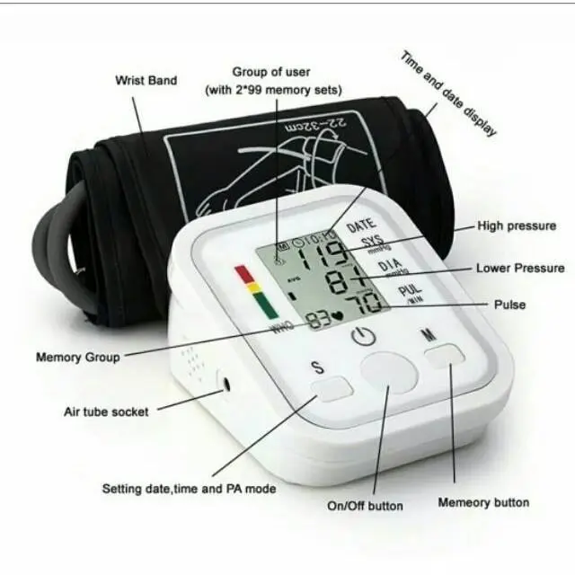 Alat tensi yang dipergunakan pada lengan tangan. Mudah pemakaiannya, sehingga anda dapat memonitor kesehatan keluarga anda setiap saat.