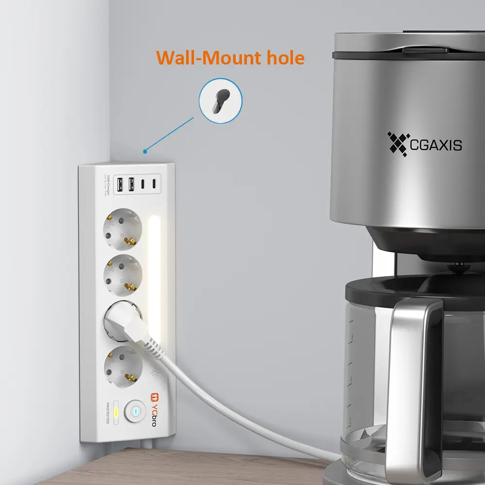 XCbro Stopkontak 17W QC3.0 Pengisi Daya Pelindung Lonjakan Arus Listrik Strip Daya dengan 4 Soket USB Tipe C dan Perlindungan Surge 1050g