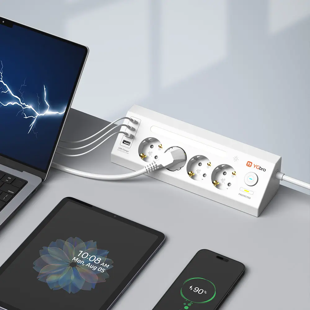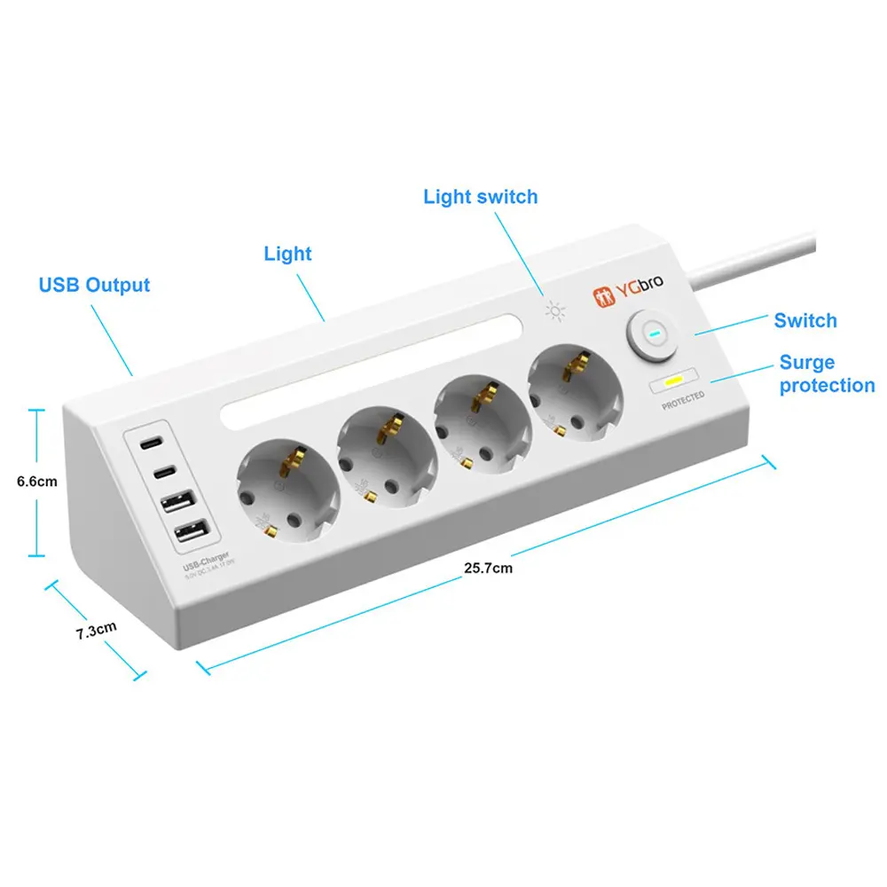 ✨ Stopkontak 17W QC3.0 dengan pengisi daya pelindung lonjakan arus listrik. Dilengkapi dengan 4 soket daya USB dan 4 stopkontak ekstensi tipe C. Material PC + ABS tahan api hingga 750°C. Cocok untuk penggunaan di rumah atau kantor.