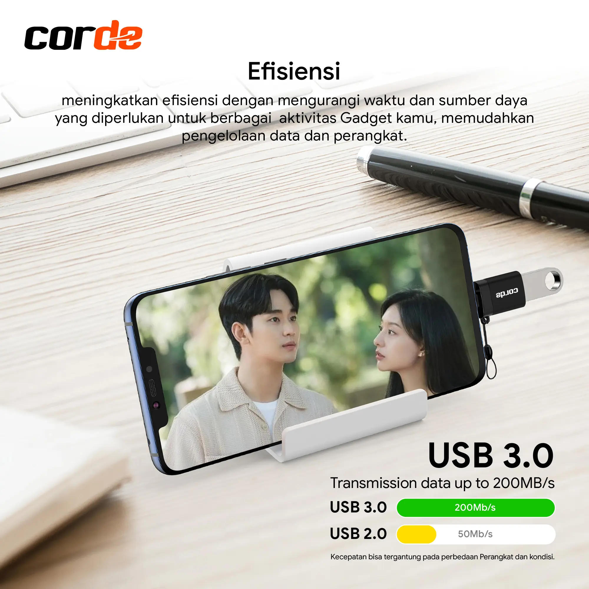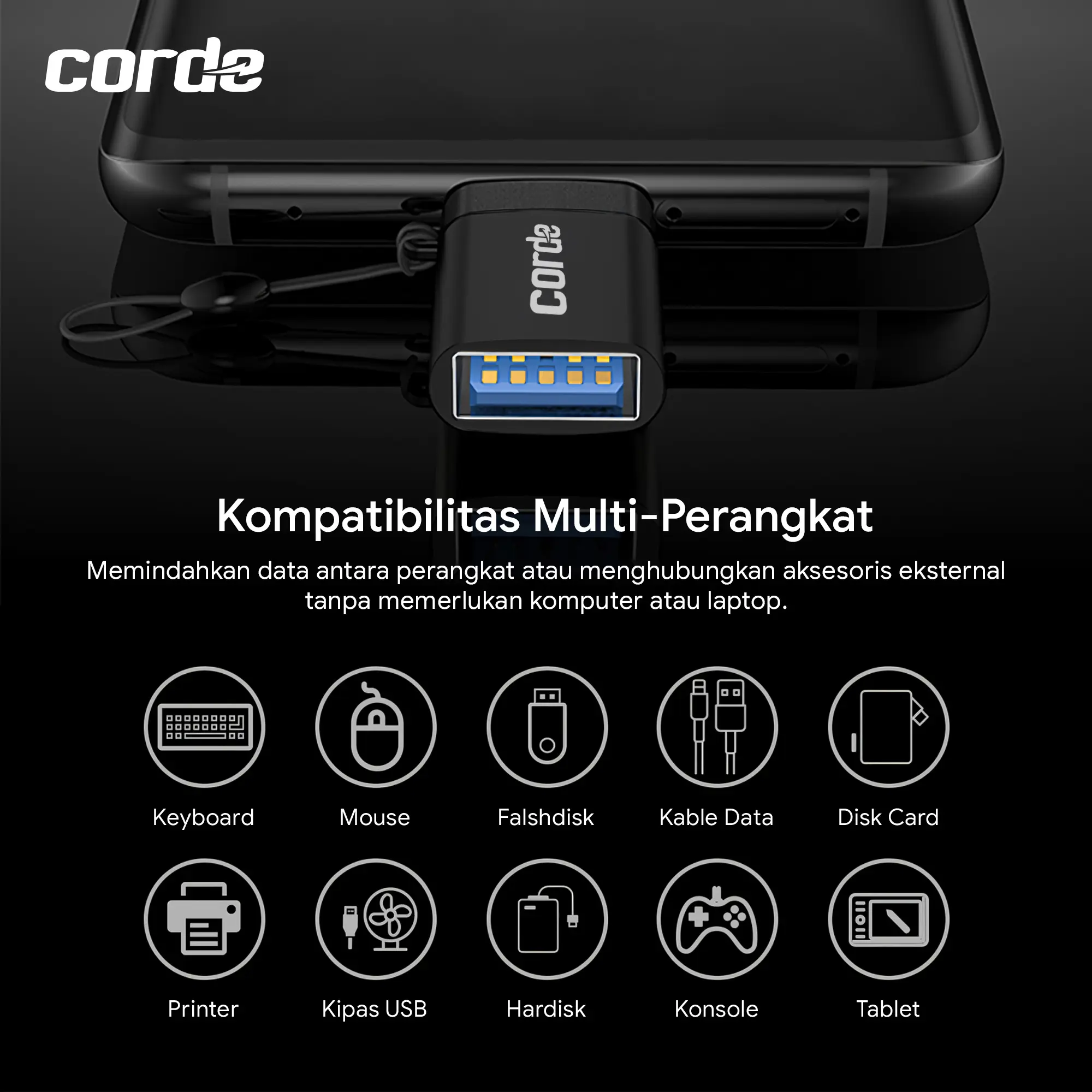 CORDE OTG Type C to USB 3.0 Adapter – Transfer Data Cepat & Praktis!