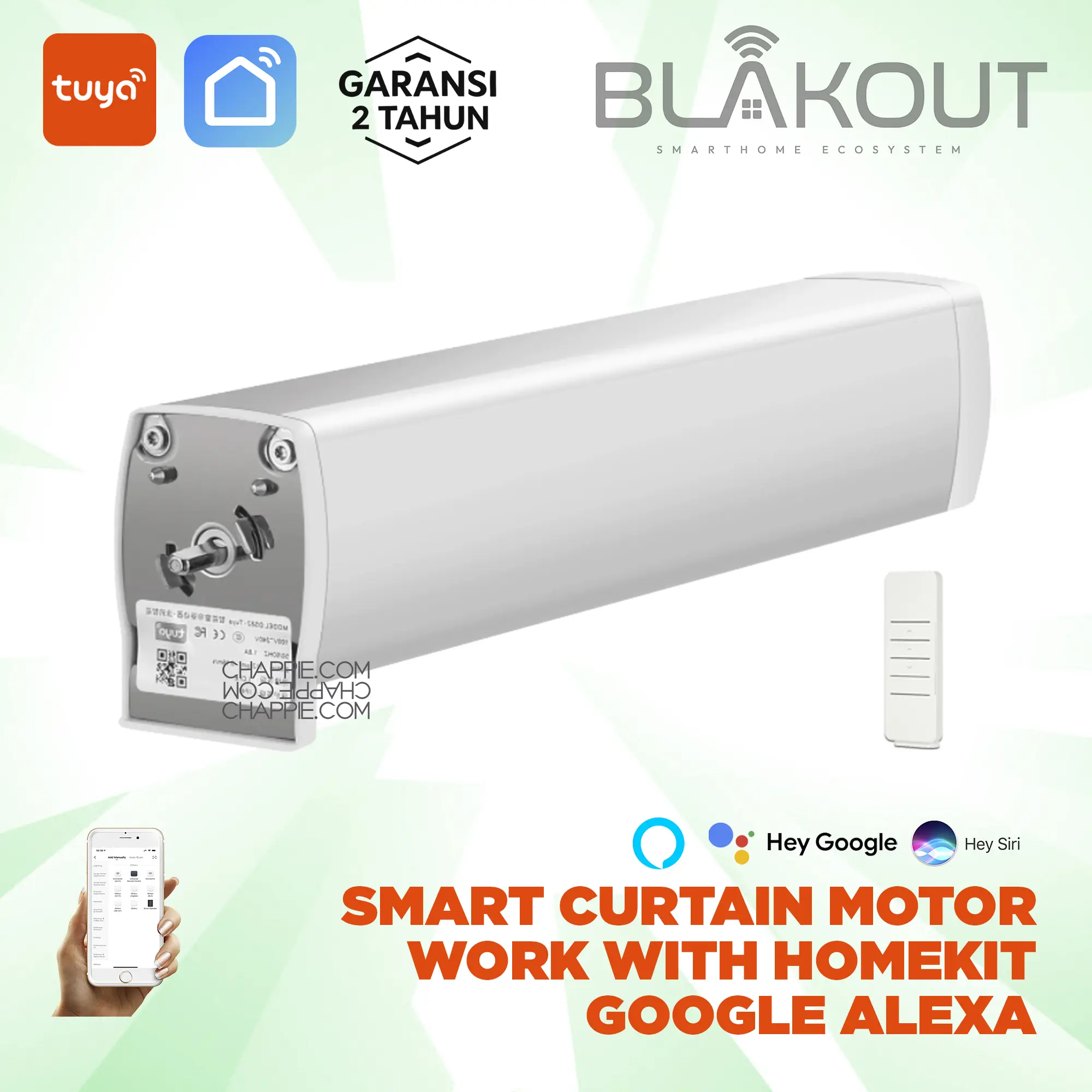 Gorden Otomatis Tangguh, Senyap & Pintar. BLAKOUT dirancang untuk performa berat (Heavy Duty), mampu menarik kain gorden tebal/blackout dengan halus. Menggunakan ekosistem Powered by Tuya, menjamin stabilitas dan interkoneksi luas.