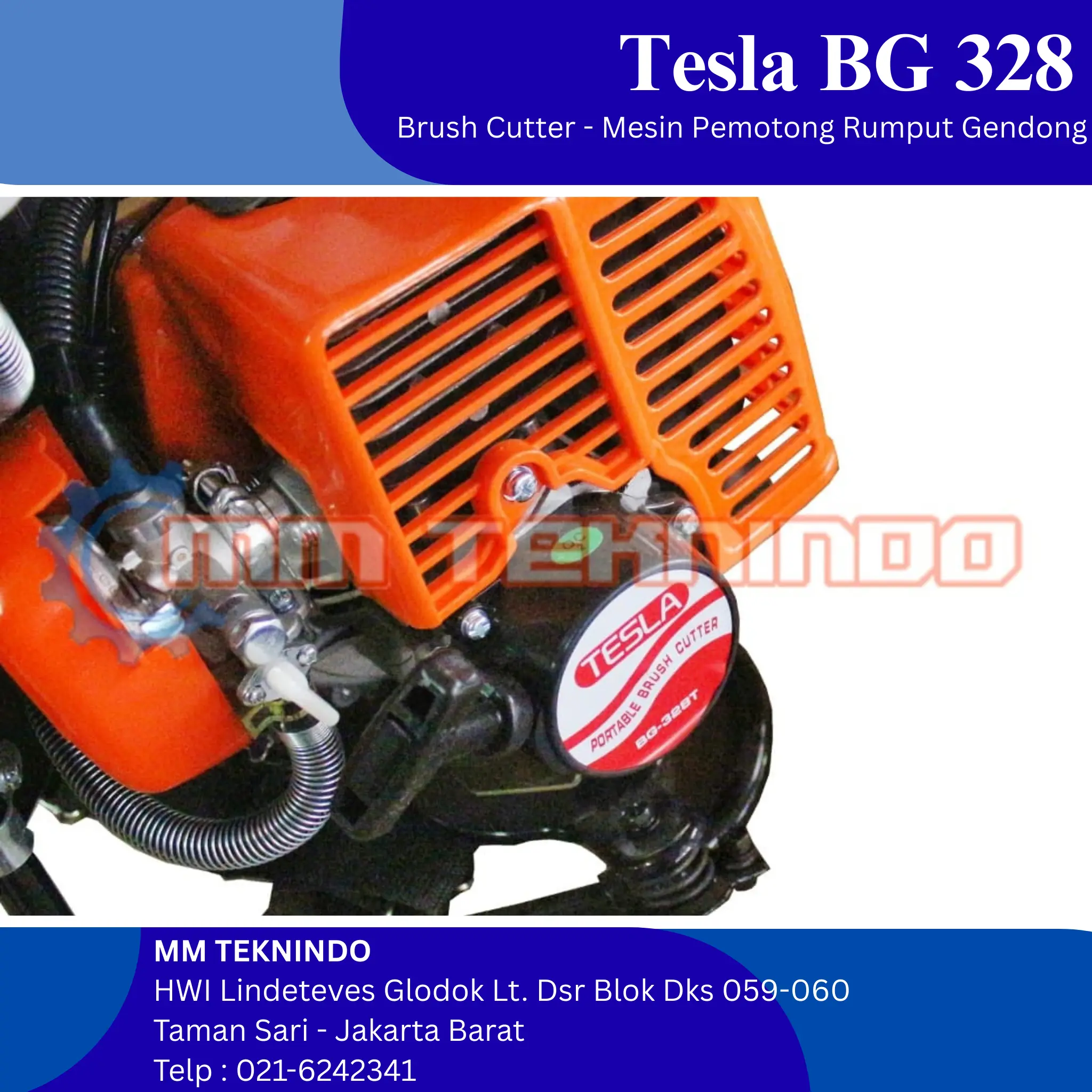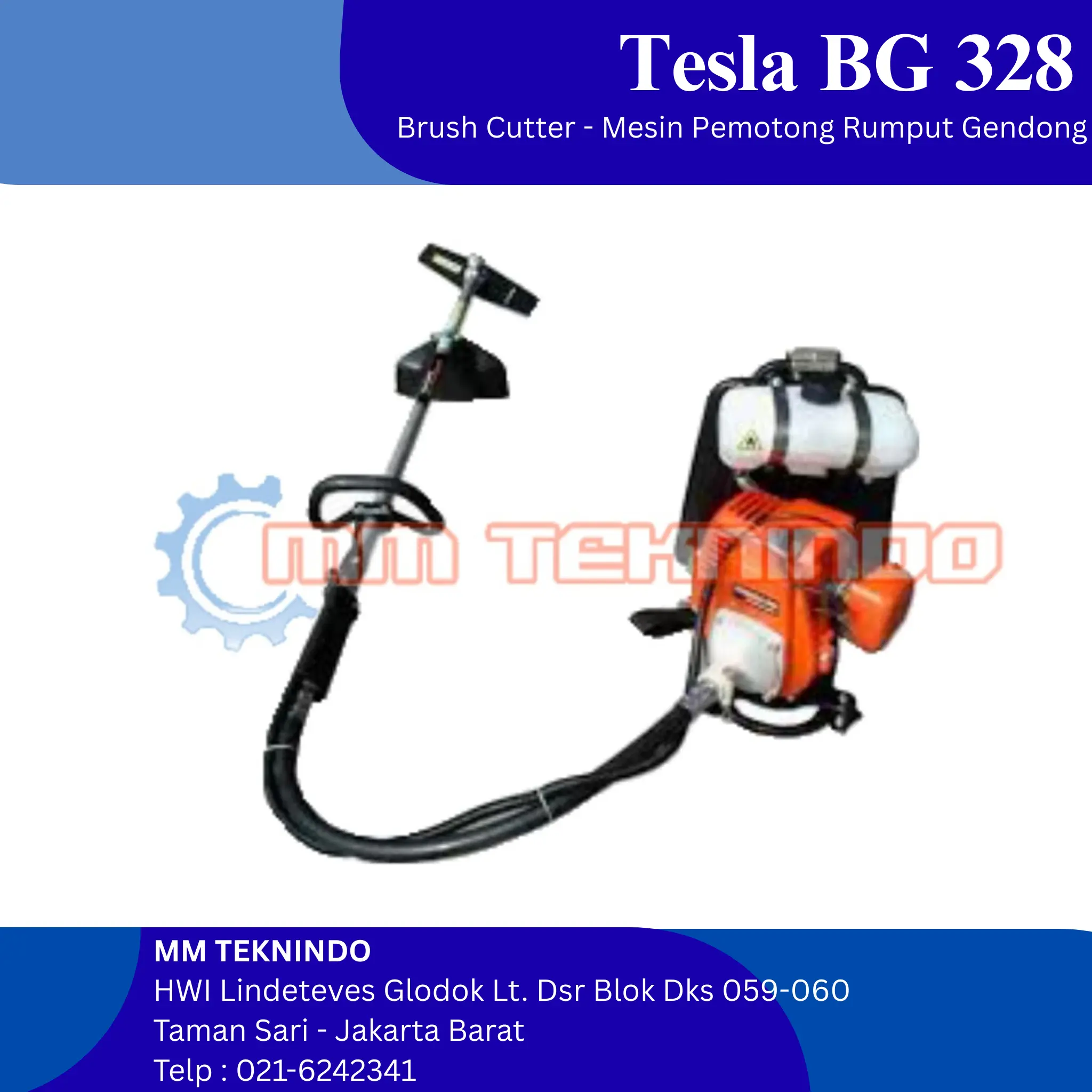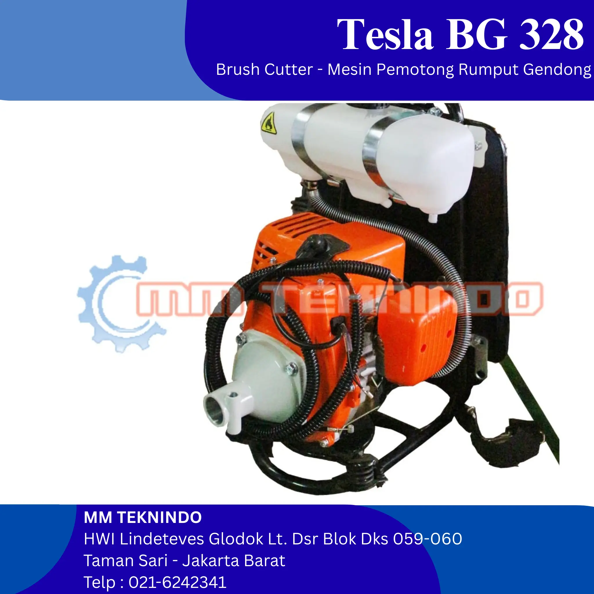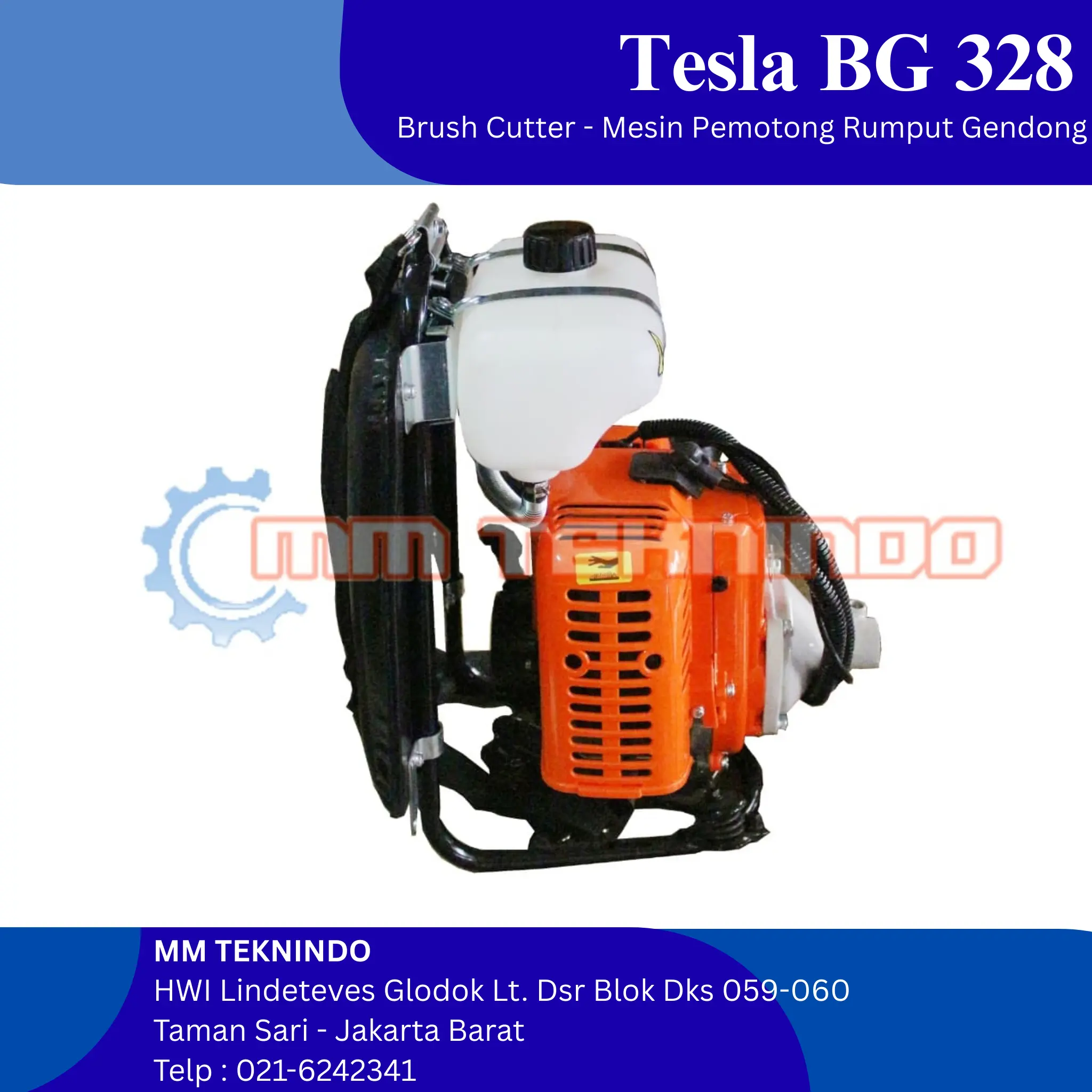 Tesla BG 328 adalah Brush Cutter (Mesin Pemotong Rumput Gendong). Spesifikasi: 2 TAK, 1.8 HP, 7000 rpm, silinder 32 cc, bahan bakar bensin campur oli 2 tak (25:1), kapasitas tangki 12 liter, starter recoil, sistem ignisi transistorized electronic, ukuran blade 306 mm, berat 15 KG. Mesin ini sangat efisien untuk memanen padi, jagung, tebu, dll.