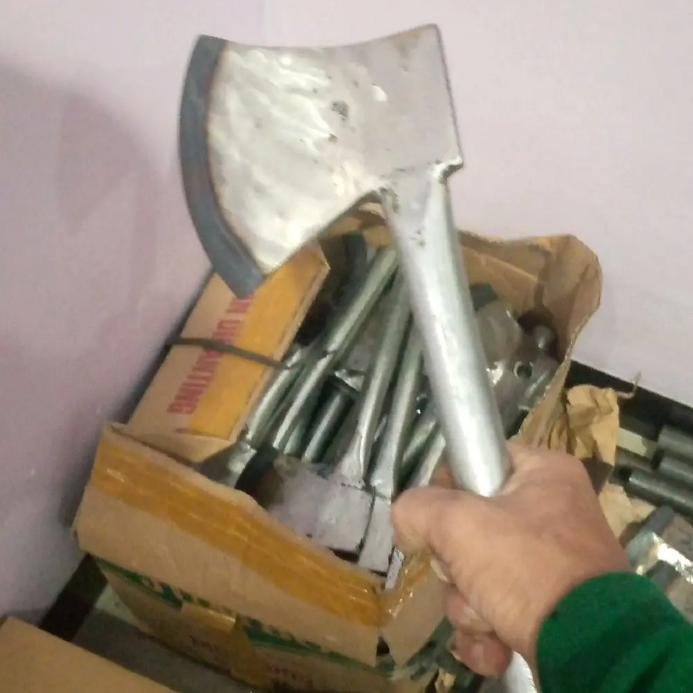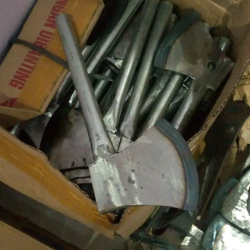 Bahan baja tebal  gagang besi tidak mudah copot rekomendasi jangka panjang desain tebal kokoh panjang = 34 cm lebar = 12 cm kurang lebihnya karna hasil pande bukan pabrikan