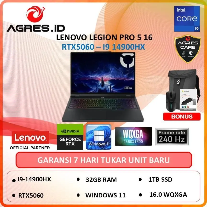 LENOVO LEGION PRO 5I 16 I9 14900HZ RTX5060 8GB/ 32GB 1TB 1TB W11+OHS+M365B 16.0 WQXGA 240HZ 100DCIP3 24ZRGB 3Y+3ADP -54ID