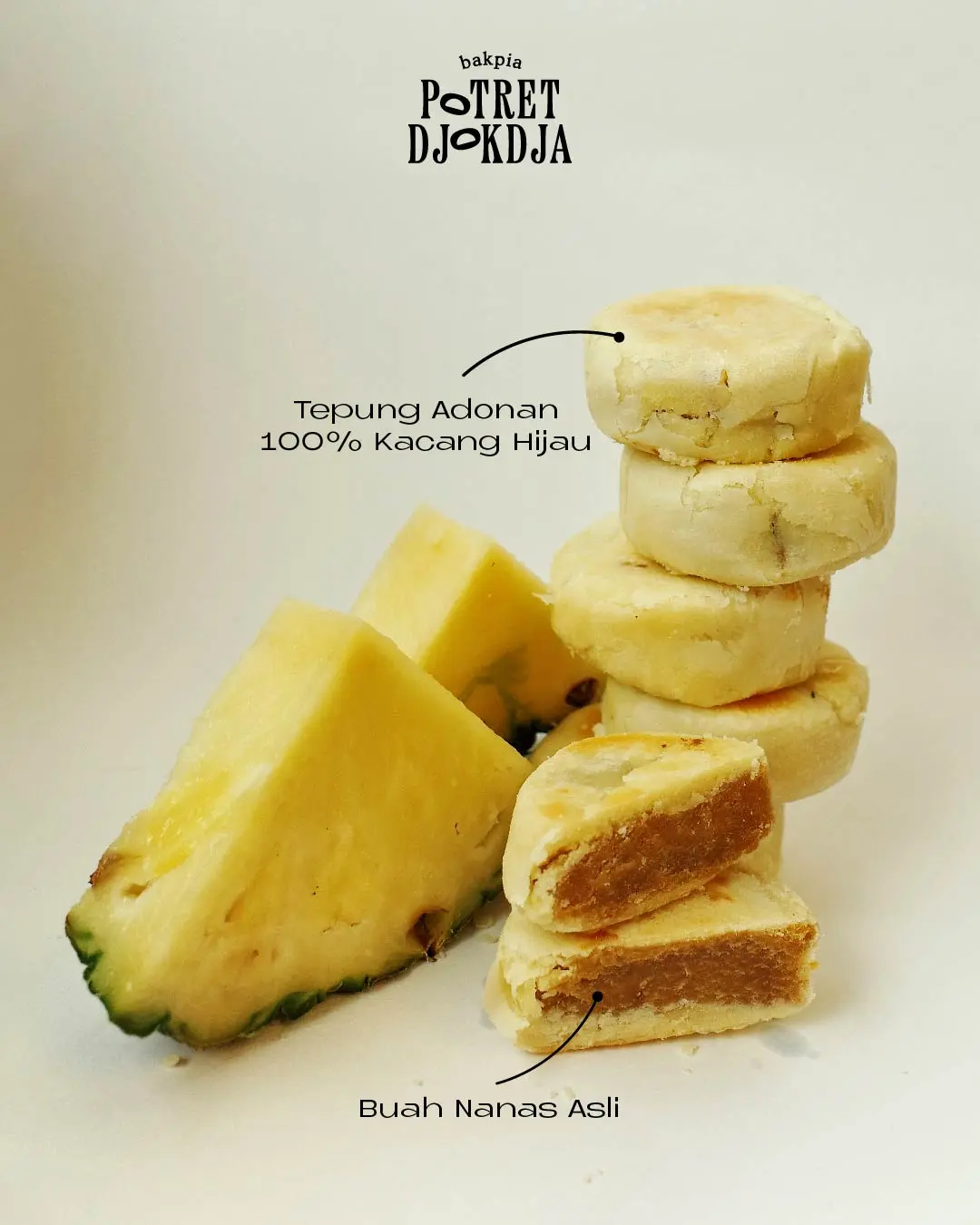 Bakpia Premium NANAS Isi 15 – Bakpia Potret Djokdja Dari Jogja, dibuat dengan cinta untuk dapat dinikmati dimanapun. Bakpia Potret Djokdja hadir sebagai pengingat potret kecil kota Jogja. Produk Bakpia Premium Potret Djokdja dibuat dengan bahan bahan pilihan terbaik dan di produksi secara handmade setiap harinya untuk menjaga kualitas rasa. • 100% Asli Kacang Ijo, Adonan isi tanpa tepung. Pilihan tepat untuk camilan sehat • Bakpia bertahan 10 hari dalam suhu ruang • Bakpia bertahan s.d 1 bulan di suhu kulkas • Pesanan melebihi pukul 15.00 WIB akan di proses hari berikutnya • Khusus hari sabtu pesanan maksimal pukul 11.30 WIB dan hari Minggu libur • Perhatikan deskripsi atau bertanya melalui kolom chat sebelum membeli