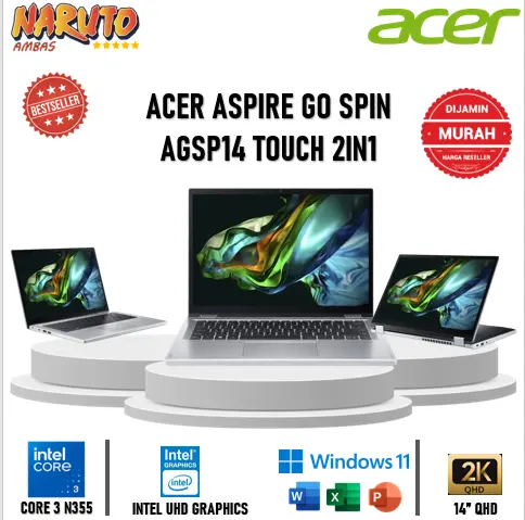 5. ACER Aspire Go Spin AGSP14 Touch Core 3 N355 8GB 512GB Windows 11 + OHS 14.0" Wuxga Pen 2in1