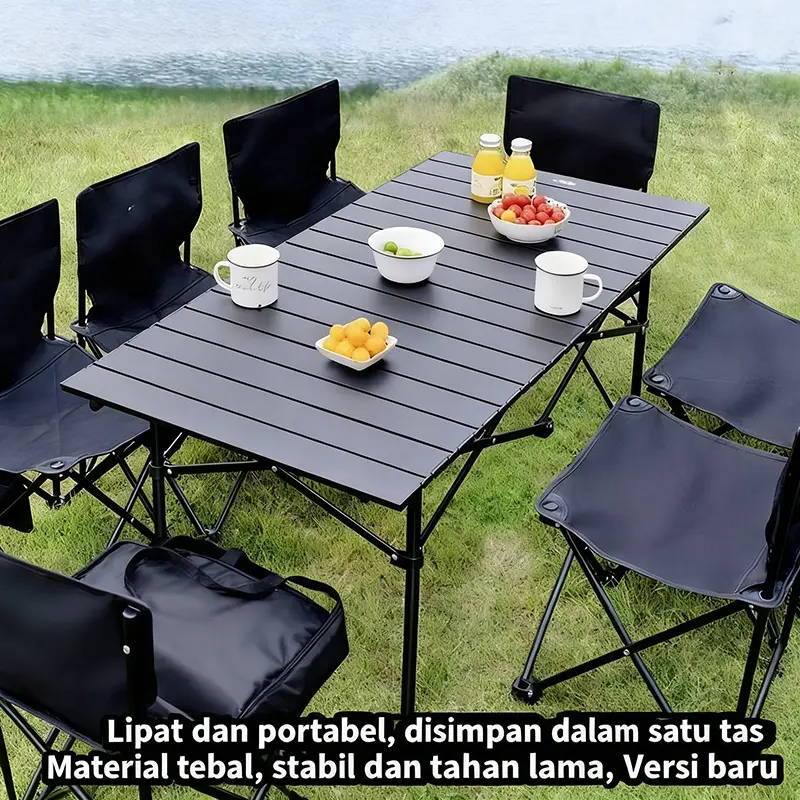 ·Kursi piknik ini dilengkapi dengan desain daun biru yang menarik. Cocok untuk aktivitas outdoor dan piknik di taman. 🌿