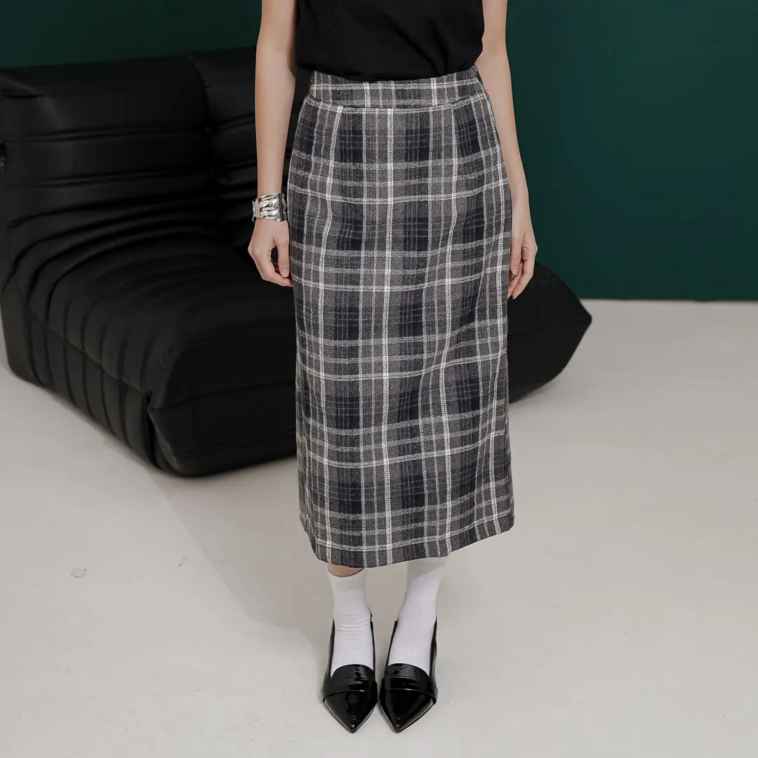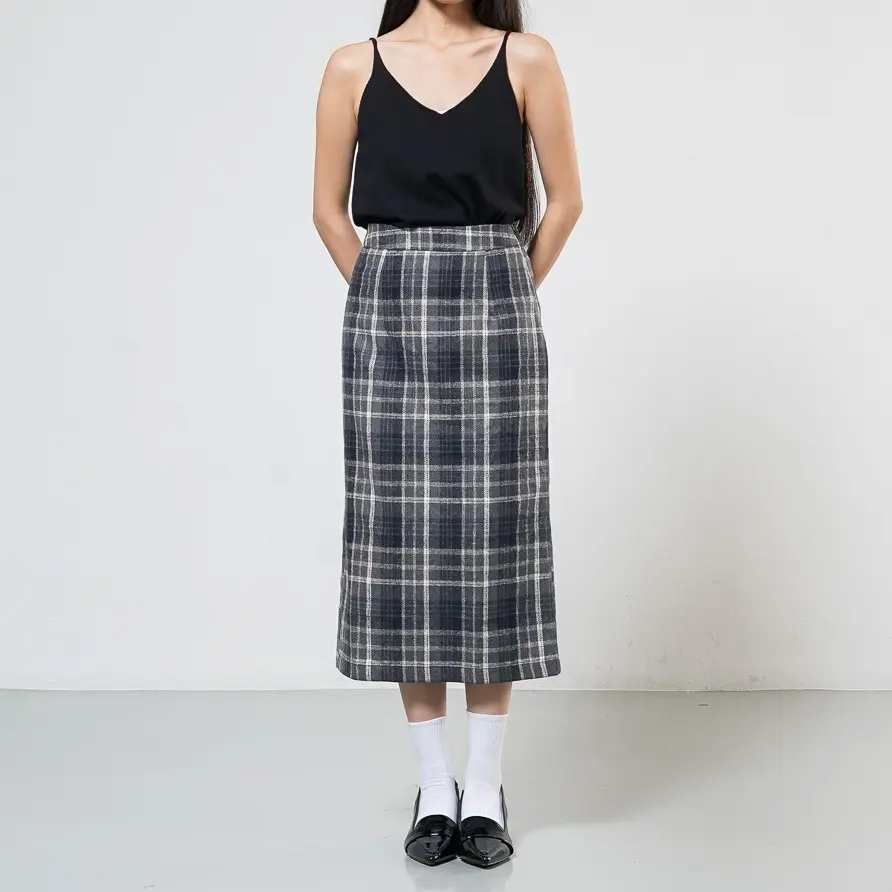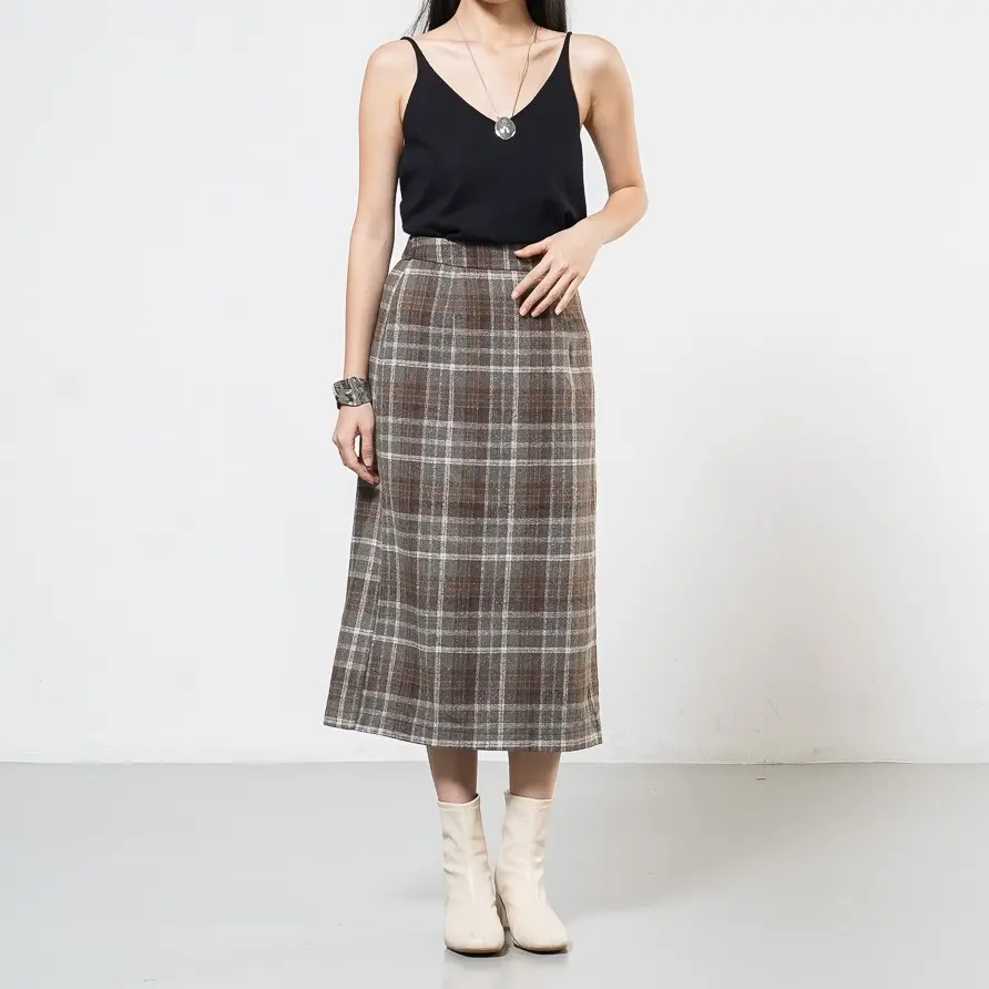 This Is April Bawahan Rok Midi Korea Style Wanita Winter Skirt Brown Dan Grey