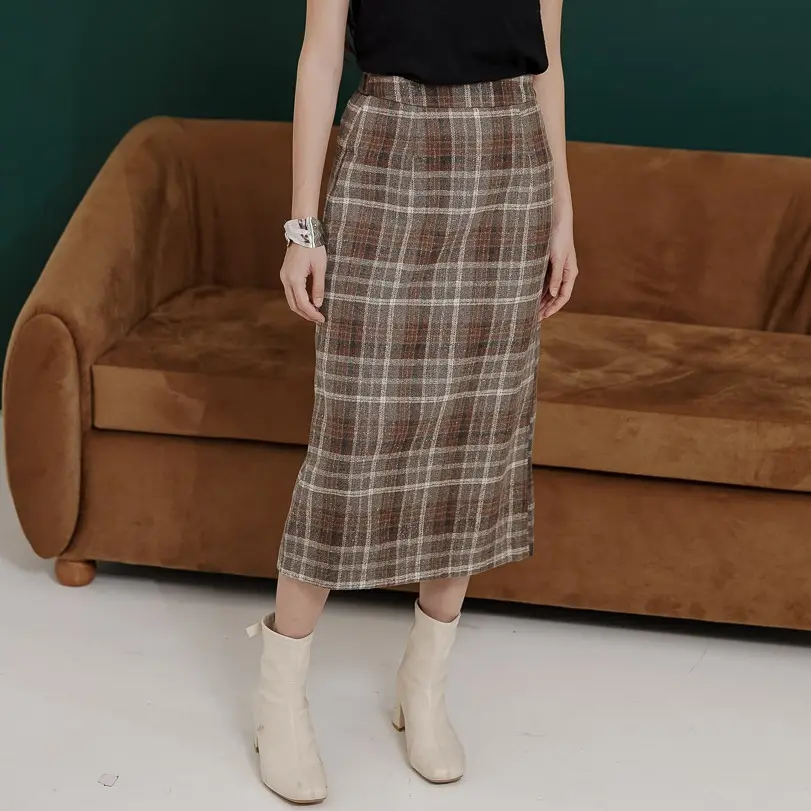 Skirt ini hadir dengan desain yang simpel dan nyaman untuk aktivitas sehari-hari. Dilengkapi dengan resleting di samping dan karet dibelakang yang samar dan sentuhan pola bergaris memberikan tampilan rapi sekaligus memudahkan saat dikenakan. Detail belahan belakang di bagian bawah rok menambah sentuhan feminin yang manis. Terbuat dari bahan wol lembut dengan furing yang tidak menerawang, memberikan kenyamanan dan rasa percaya diri saat dipakai.