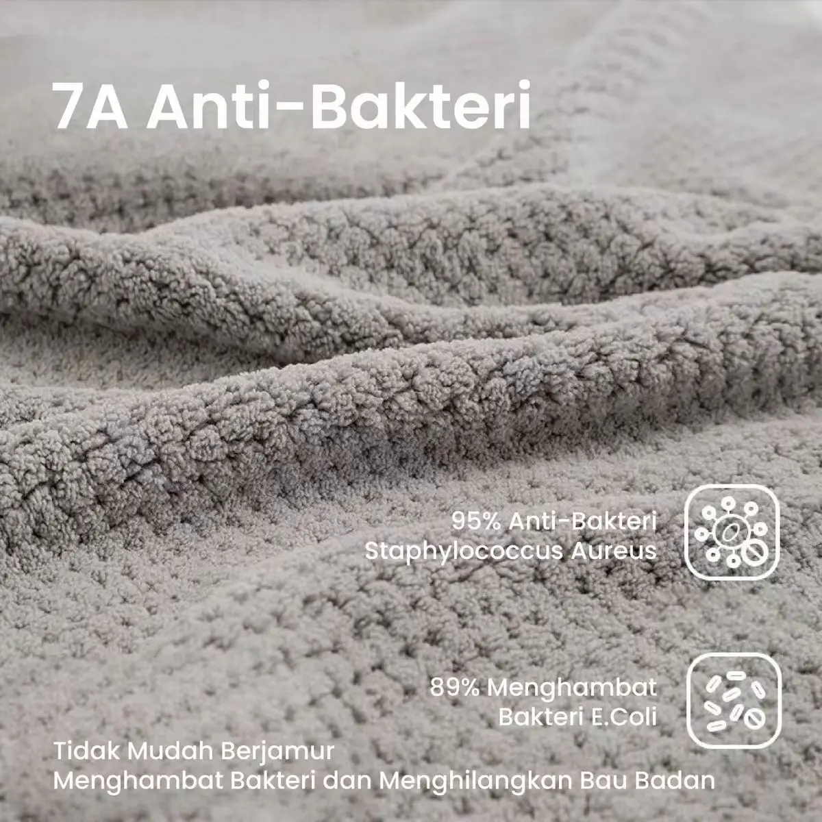 5. Produk ini memiliki proses antibakteri tingkat 5A, antibakteri dan antibau yang tahan lama hingga 6 bulan, kemasan packaging tertutup rapat sehingga menjaga handuk tetap bersih dan higienis
