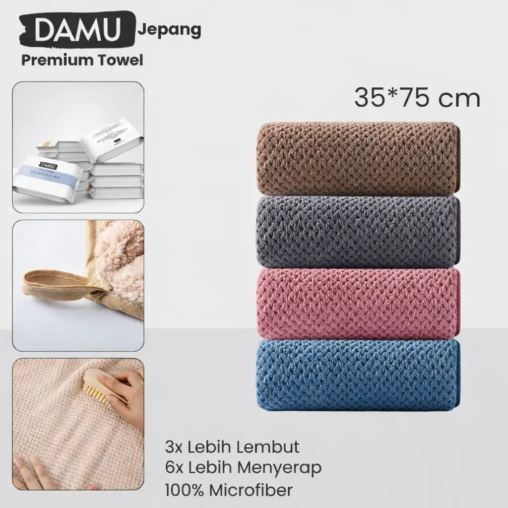 DAMU adalah merek tekstil rumah kelas atas dari Jepang. Handuk kepala dan handuk mandi dibuat dengan menggunakan teknik tenun tradisional Jepang dan kain mikrofiber terkini, memastikan kualitas terbaik dan sentuhan halus , sempurna untuk di lingkungan rumah Anda, setiap handuk/handuk mandi mengalami proses yang ketat, mencerminkan keterampilan luar biasa dari pengrajin Jepang