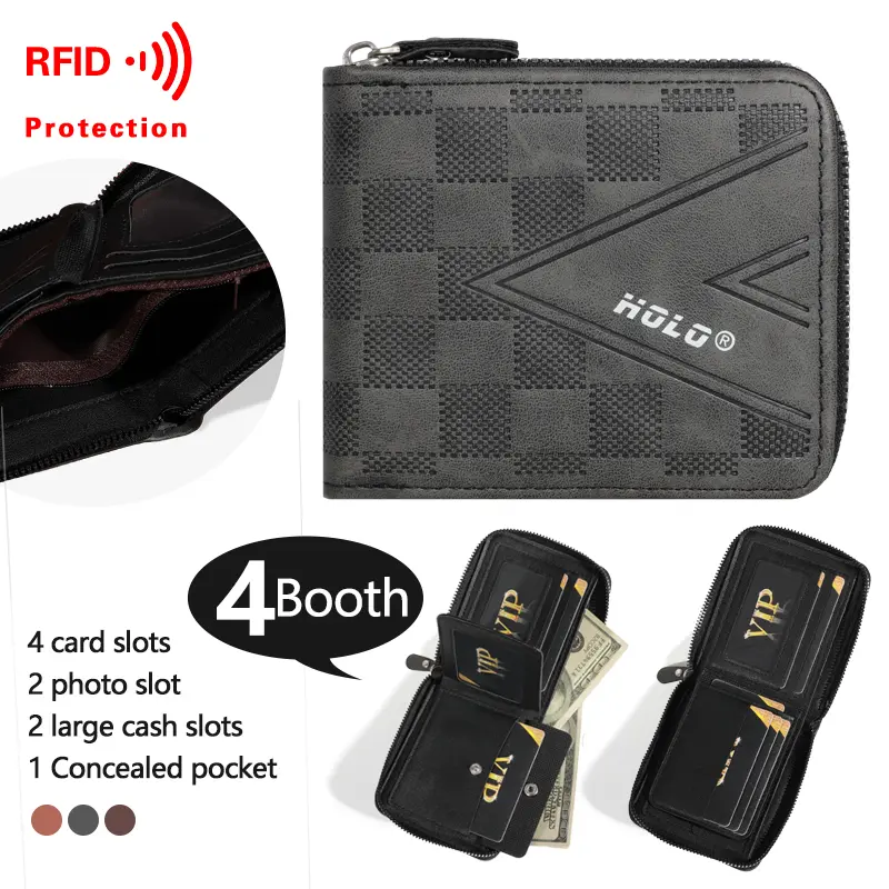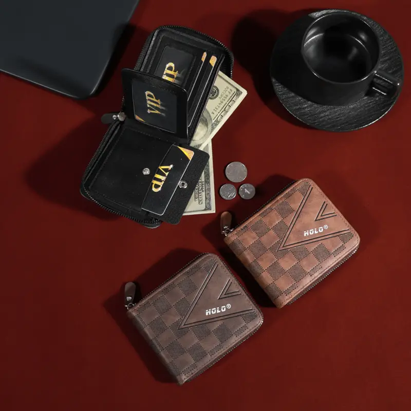 HOLO Dompet Pria Kulit Premium Dompet Cowok Keren Dompet Lipat Mini Leather Vintage 4 Slot