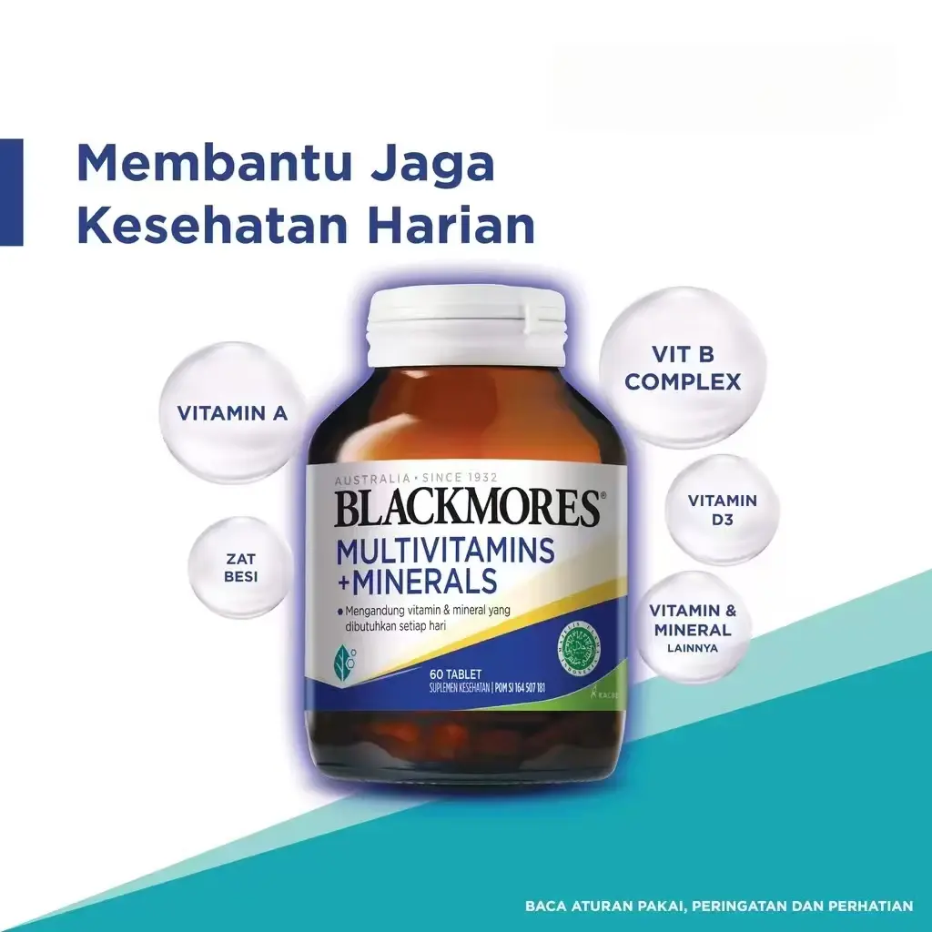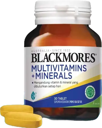 Blackmores Multivitamins + Minerals memberikan dukungan gizi untuk tubuh. Suplemen ini mengandung berbagai vitamin dan mineral untuk menjaga kesehatan harian. Dengan konsumsi rutin, Anda mendapatkan "asuransi gizi" optimal untuk kesehatan yang baik. Harvard (2002) merekomendasikan multivitamin untuk semua orang dewasa.