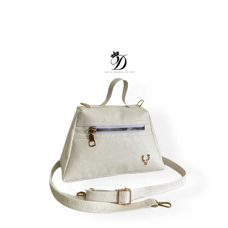 Bahan tas ini adalah PU dengan tekstur kulit jeruk. Ukuran tas: P.24cm x L.8cm x T.17cm. Tas ini tersedia dalam berbagai warna: hitam, putih, Cream (gold), Mocca, biru, dan pink. Cocok untuk wanita yang mencari tas fashion kekinian.