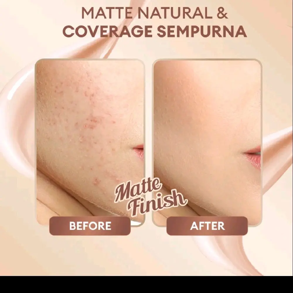 Memberikan tampilan matte natural tanpa cakey, tahan lama, dan nyaman dipakai setiap hari.