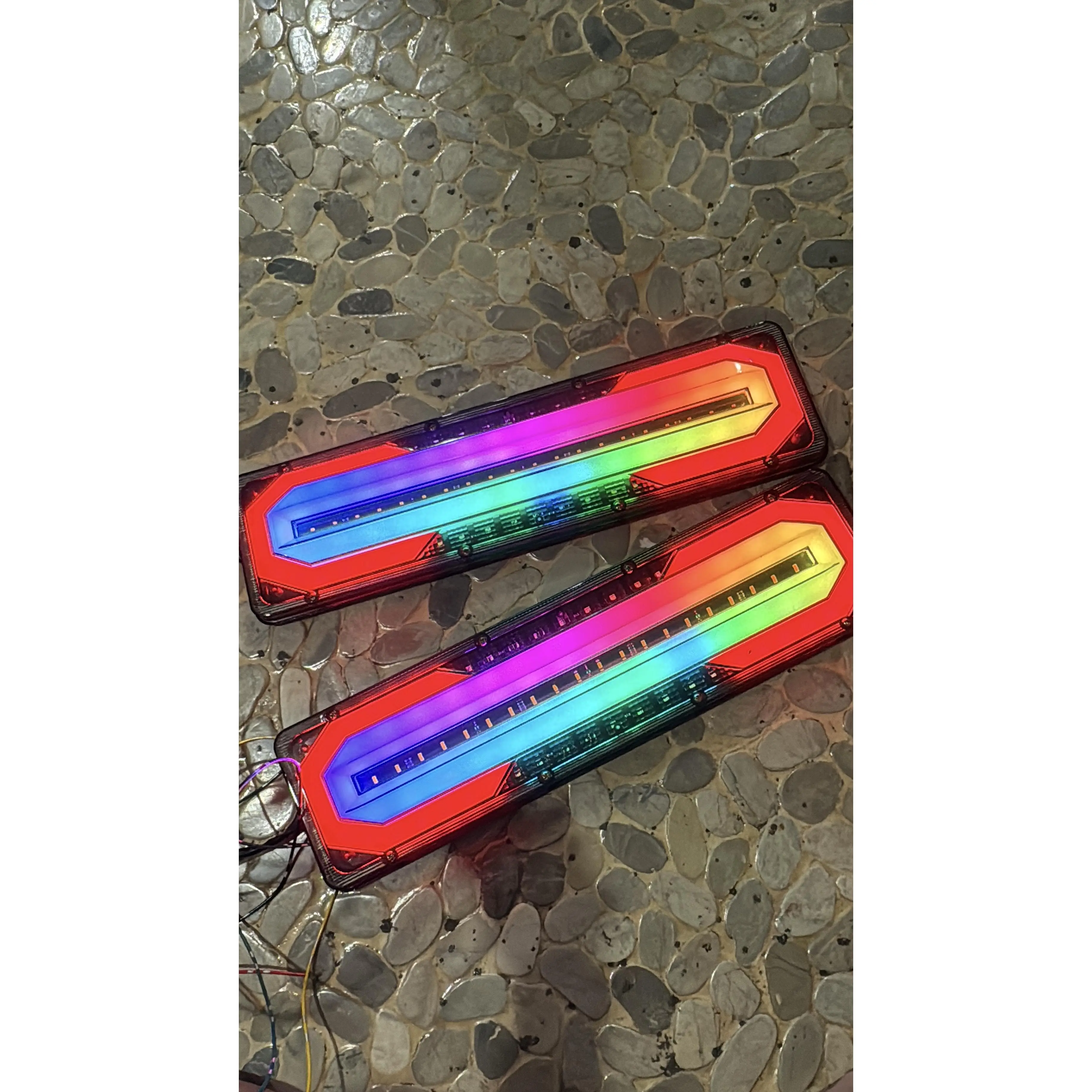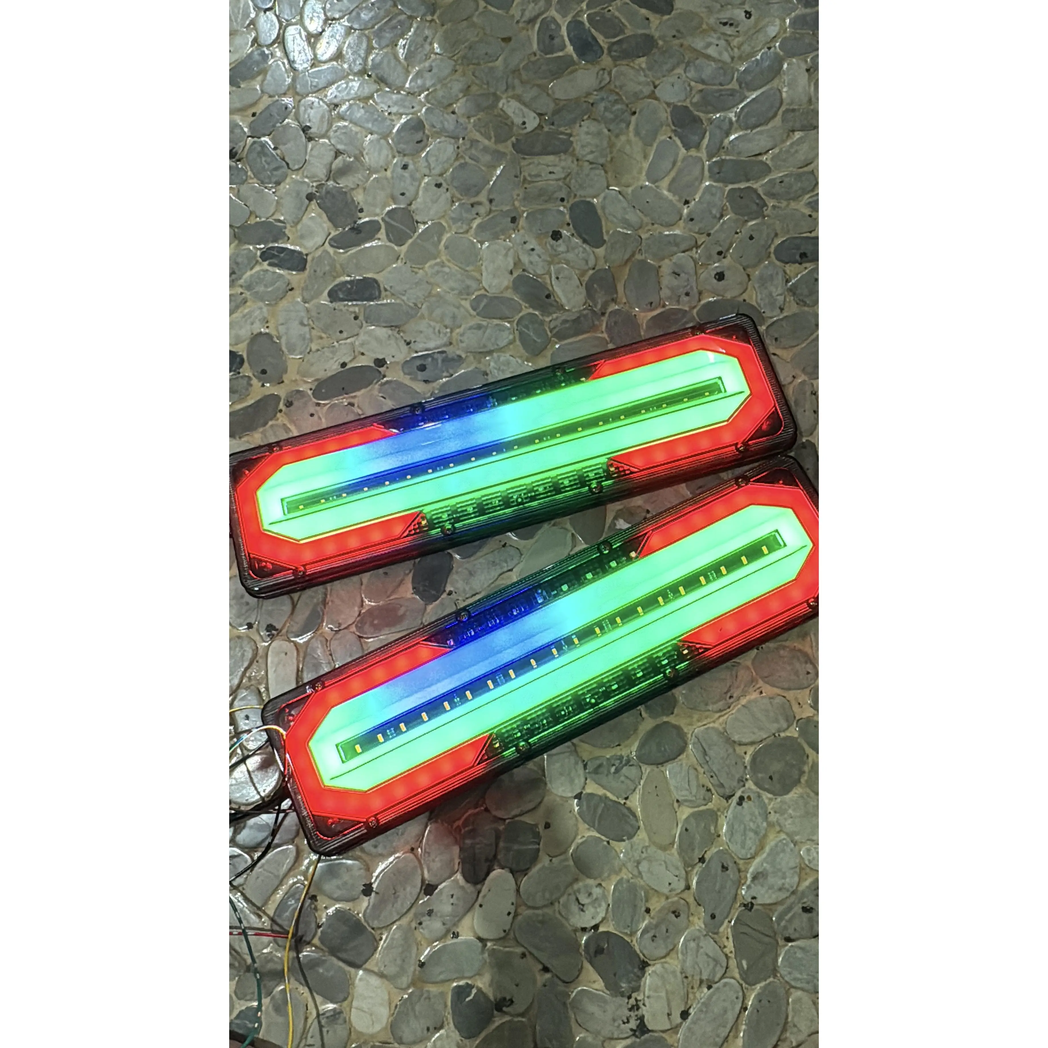 SEPASANG Stop Lamp Truk 12-24 Volt Senja Nyala Rgb Rem Kedip Model Kotak 366