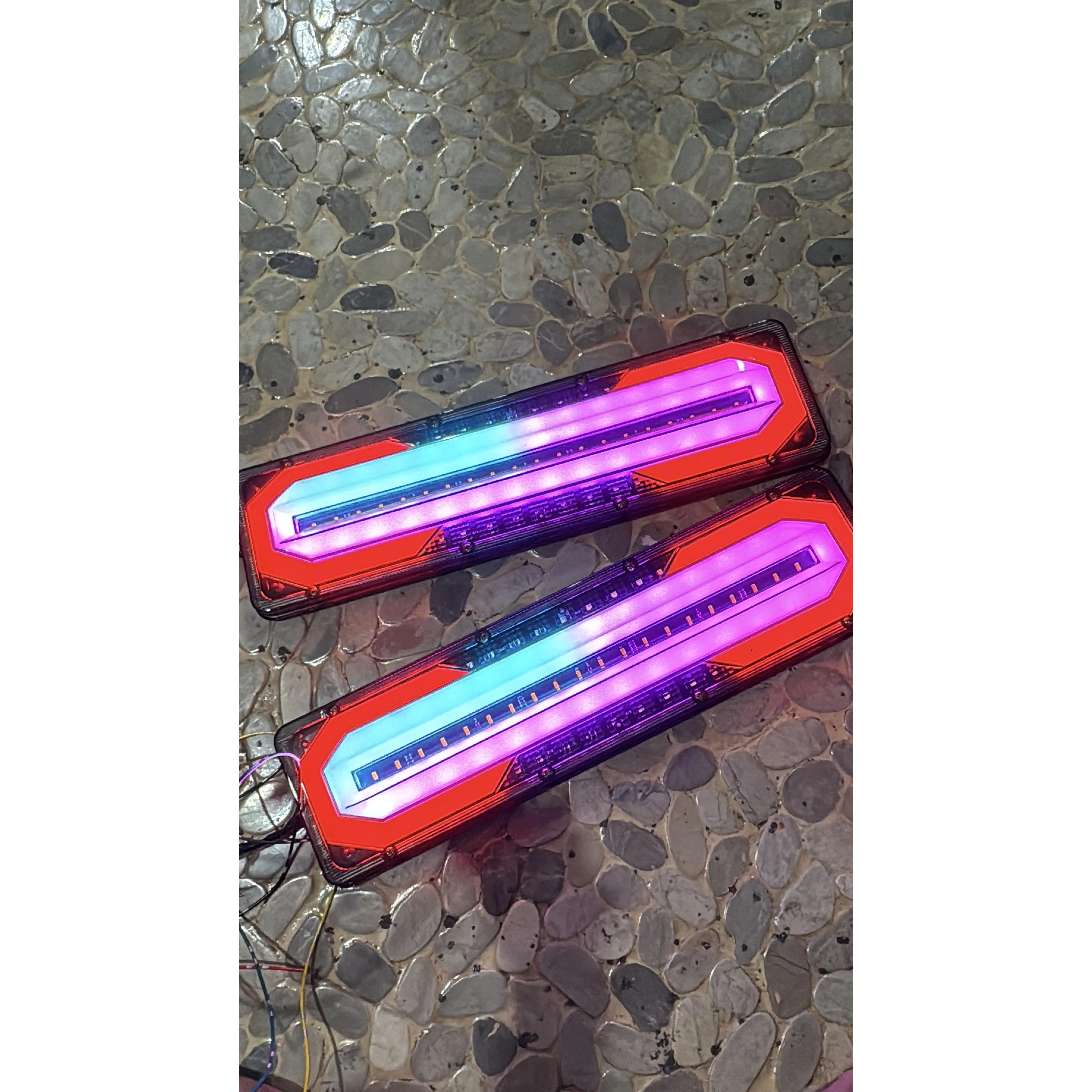 4. SEPASANG Stop Lamp Truk 12-24 Volt Senja Nyala Rgb Rem Kedip Model Kotak 366