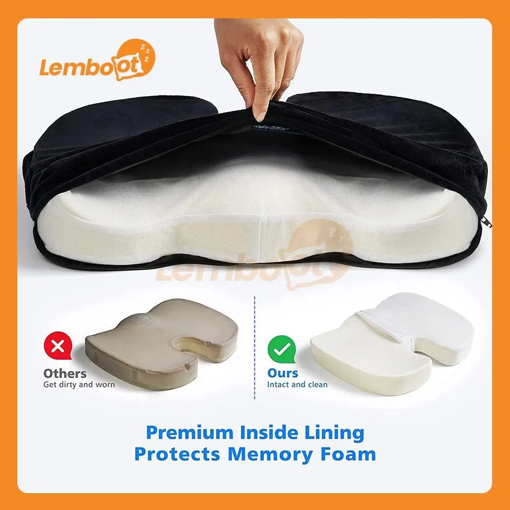 5. LEMBOOT Bantal Duduk Premium, Memory Foam 100% Dilapisi Beludru yang Lembut untuk Dukungan Punggung