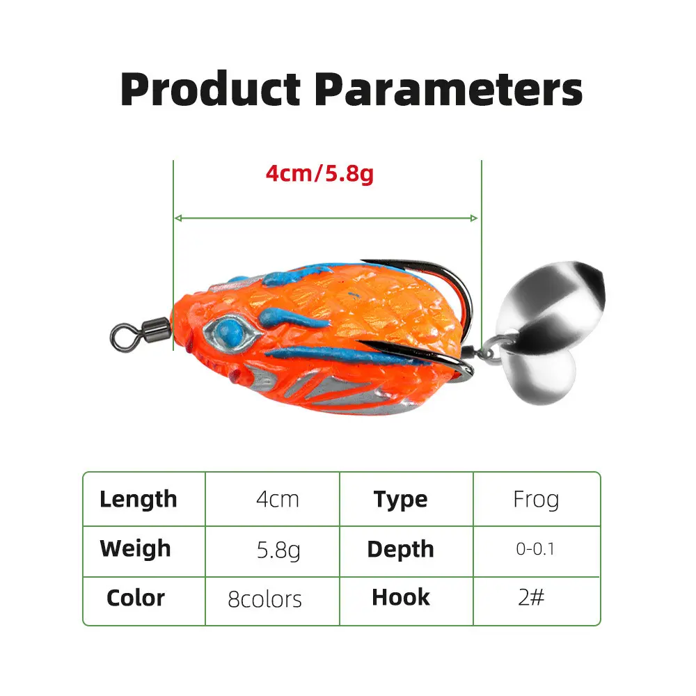 Umpan ini cocok untuk casting toman, gabus, dan ikan air tawar. Spesifikasi: Umpan Tiruan, Model Thunder Frog Modified Thai Style, Berat 5.8g, Panjang 4cm. Desain Double Sequin untuk menarik perhatian ikan. Warna tersedia: A/B/C/D/E/F/G/H. Bahan berkualitas, tahan lama.