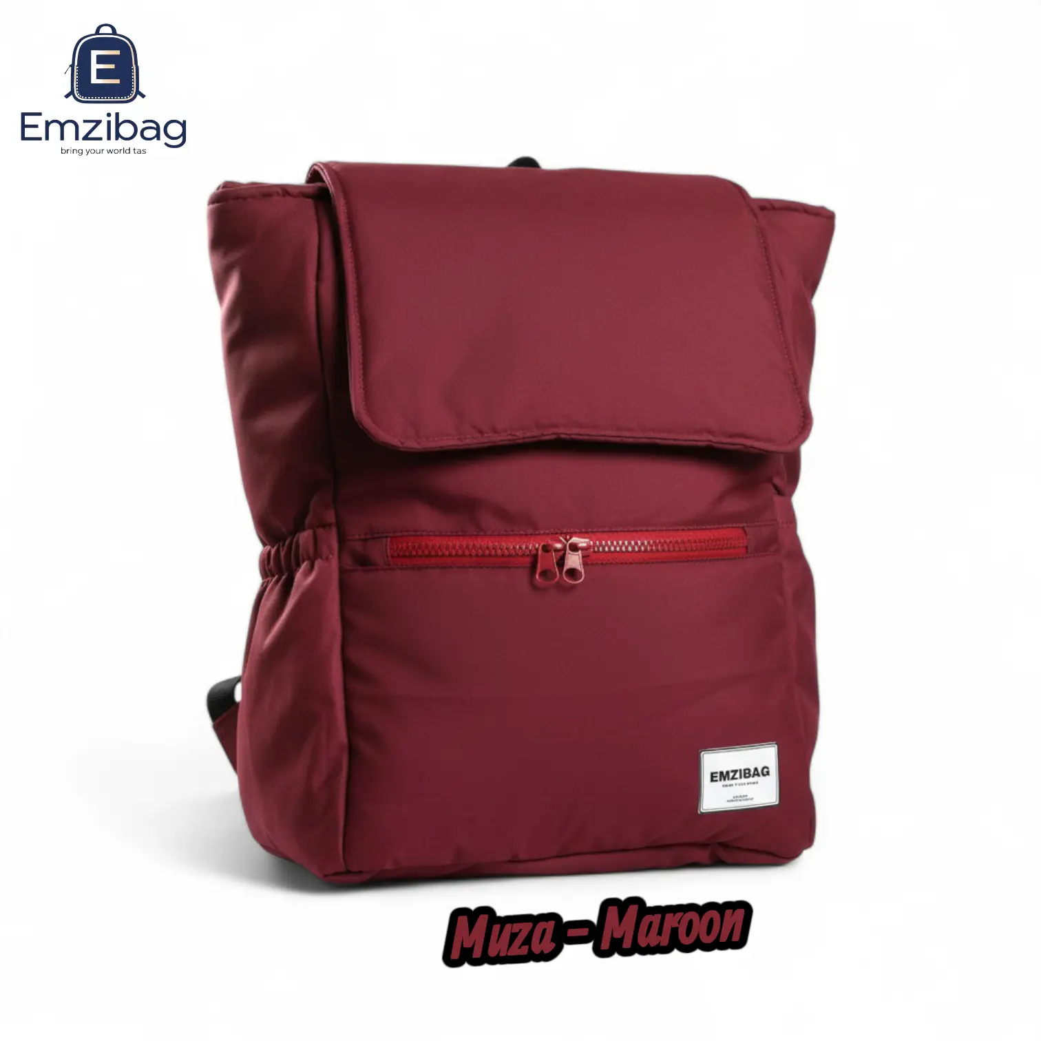 ✨ EMZIBAG Tas Ransel Sekolah backpack Jasper Polyester Waterproof 14 Inch MUZA Hitam Navy Pink Mocca dengan Lapisan Dalam Torin Waterproof dan Busa Dacron Saku untuk Laptop AT