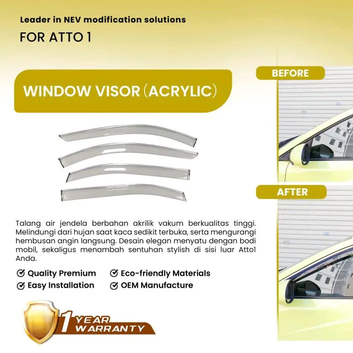 * Visor Jendela: Visor jendela ini dirancang khusus untuk BYD Atto1.