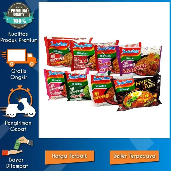·Indomie Mi Goreng Mie Instan 85 gr adalah pilihan tepat untuk pecinta mie goreng. Tersedia dalam berbagai varian seperti MIe goreng Aceh, Hype, abis, cabe ijo, iga penyet, rendang, empal gentong, dan sambel rica rica.