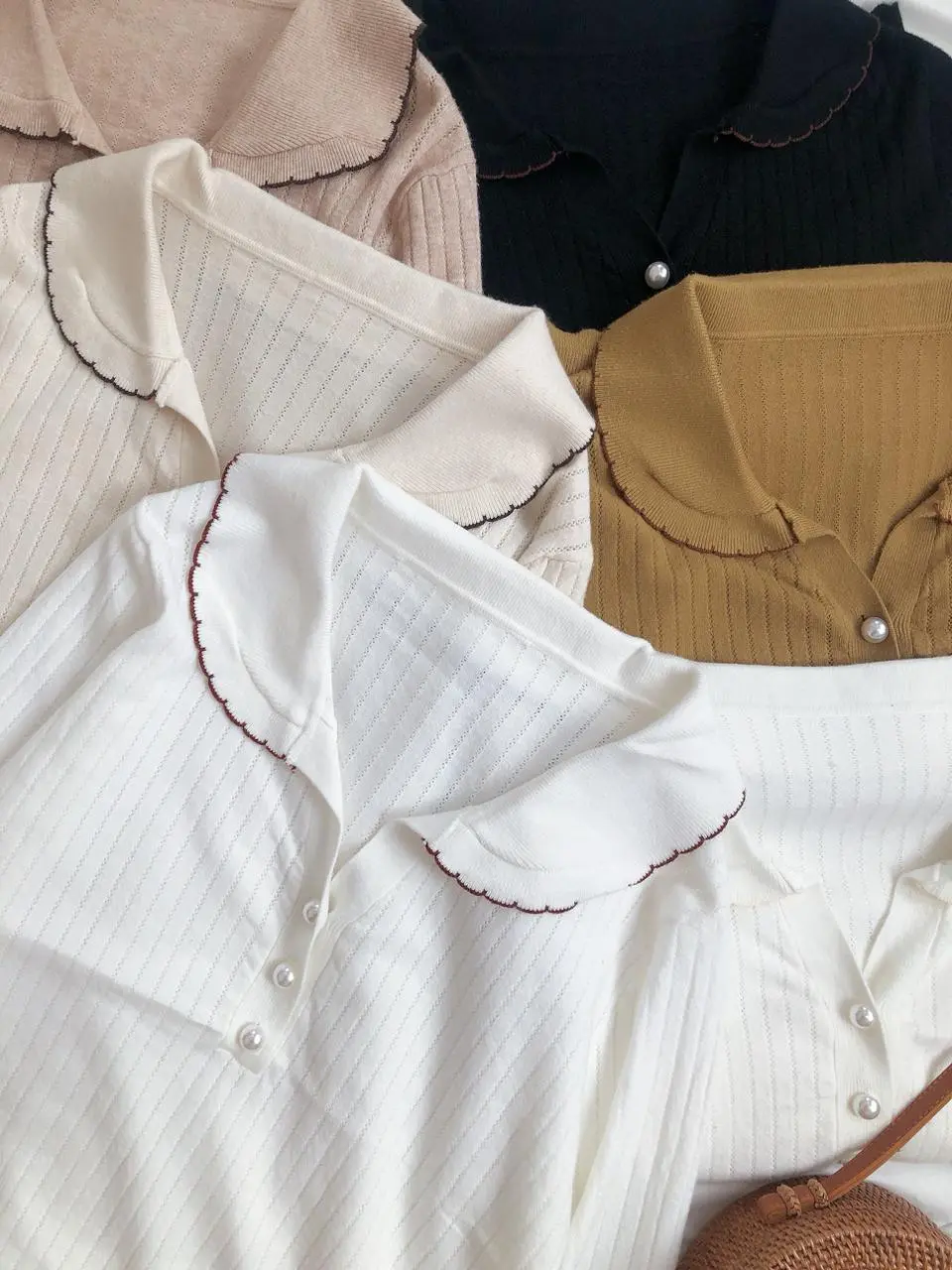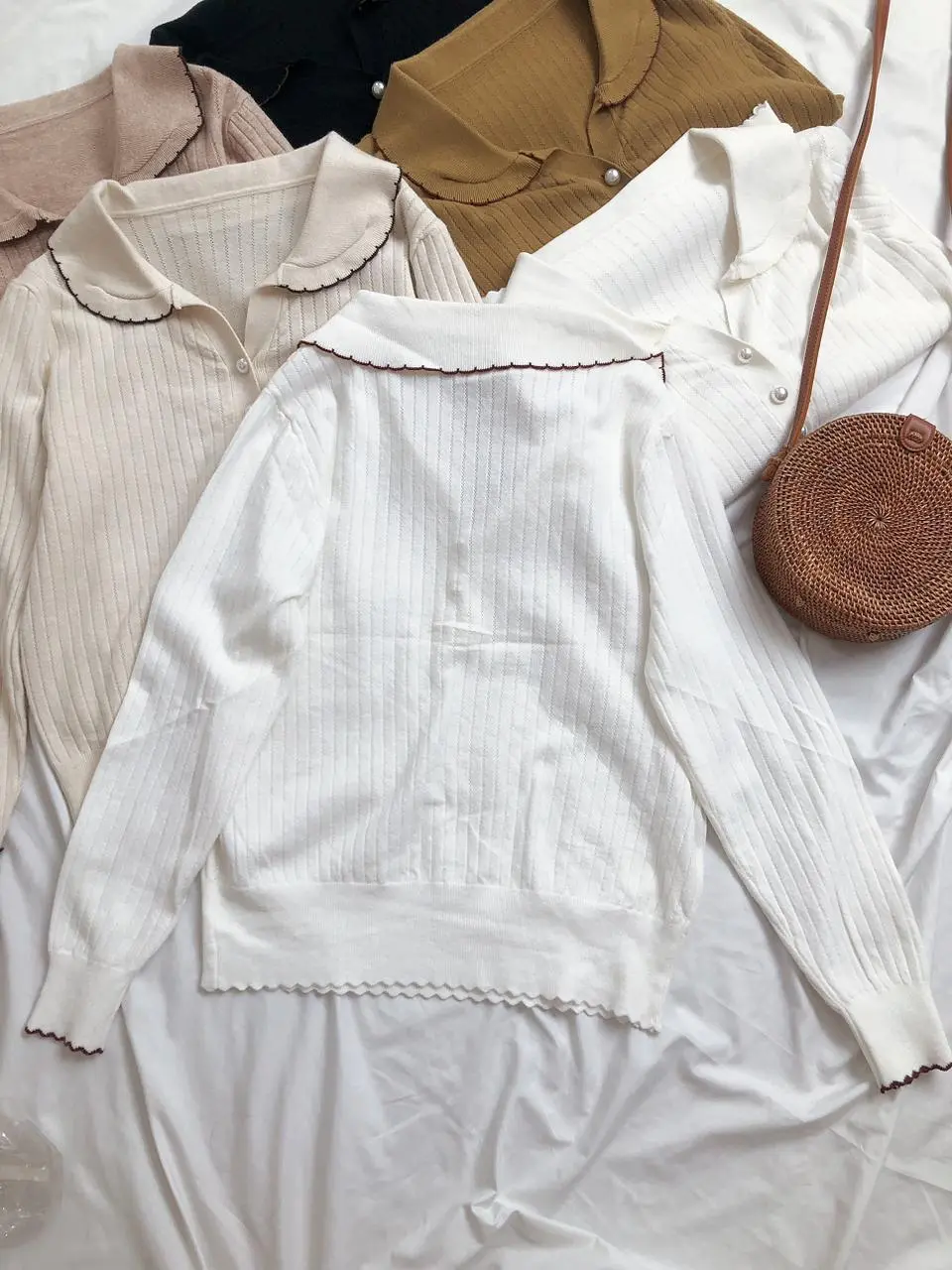 Atasan Wanita Kerah Daun V Neck Cantik Korean Style Premium Rajut