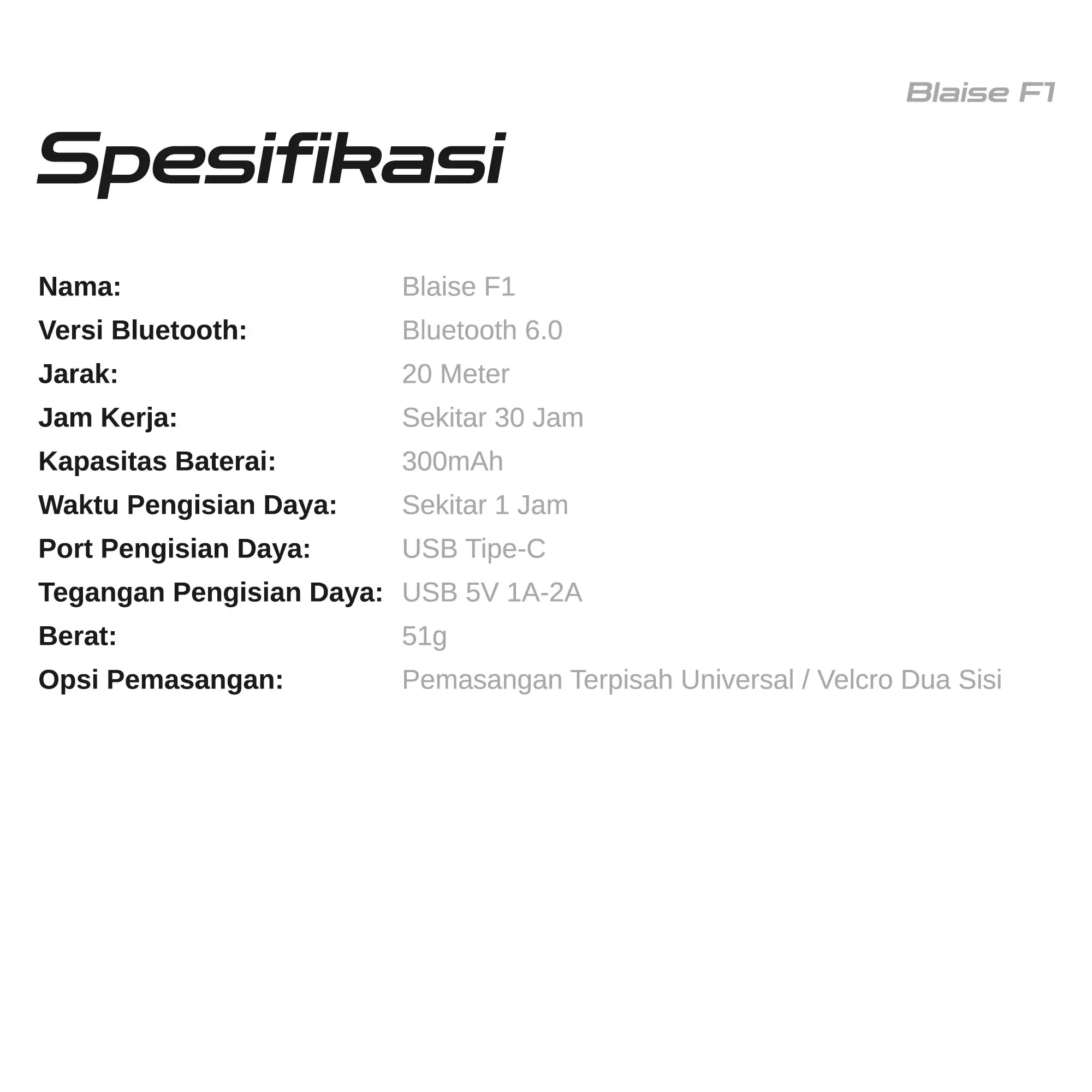 Kapasitas baterai: Baterai berkapasitas 300mAh yang padat, dengan ukuran kecil yang tidak menambah beban helm, namun mampu memberikan daya tahan yang lama, menggabungkan portabilitas dan fungsionalitas.