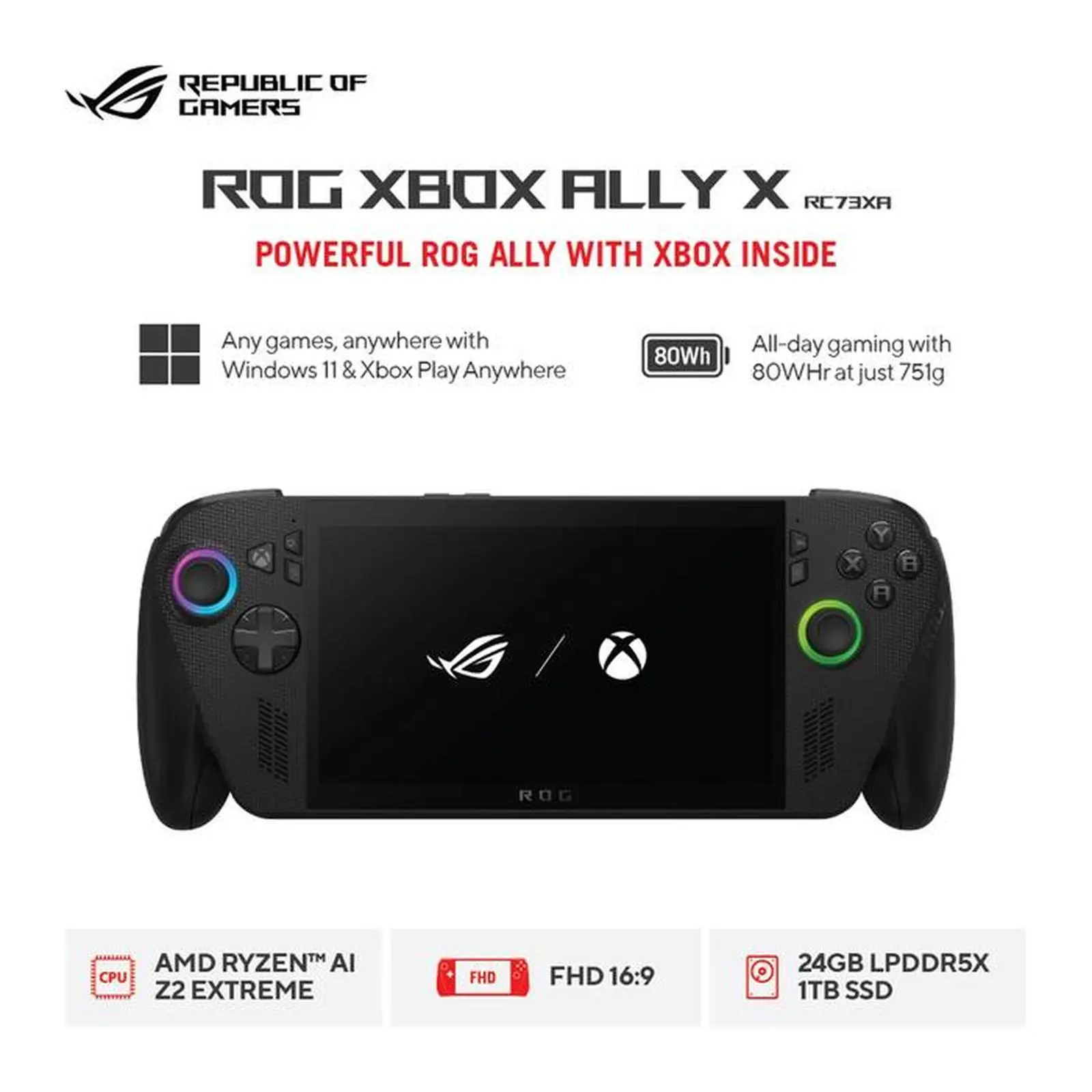 ASUS ROG Xbox Ally X RC73XA-Z2EA35A3T – Black | AMD Ryzen AI Z2 Extreme Processor / AMD Radeon Graphics / 24GB DDR5 / 1TB SSD / 7inch / Windows 11 Home