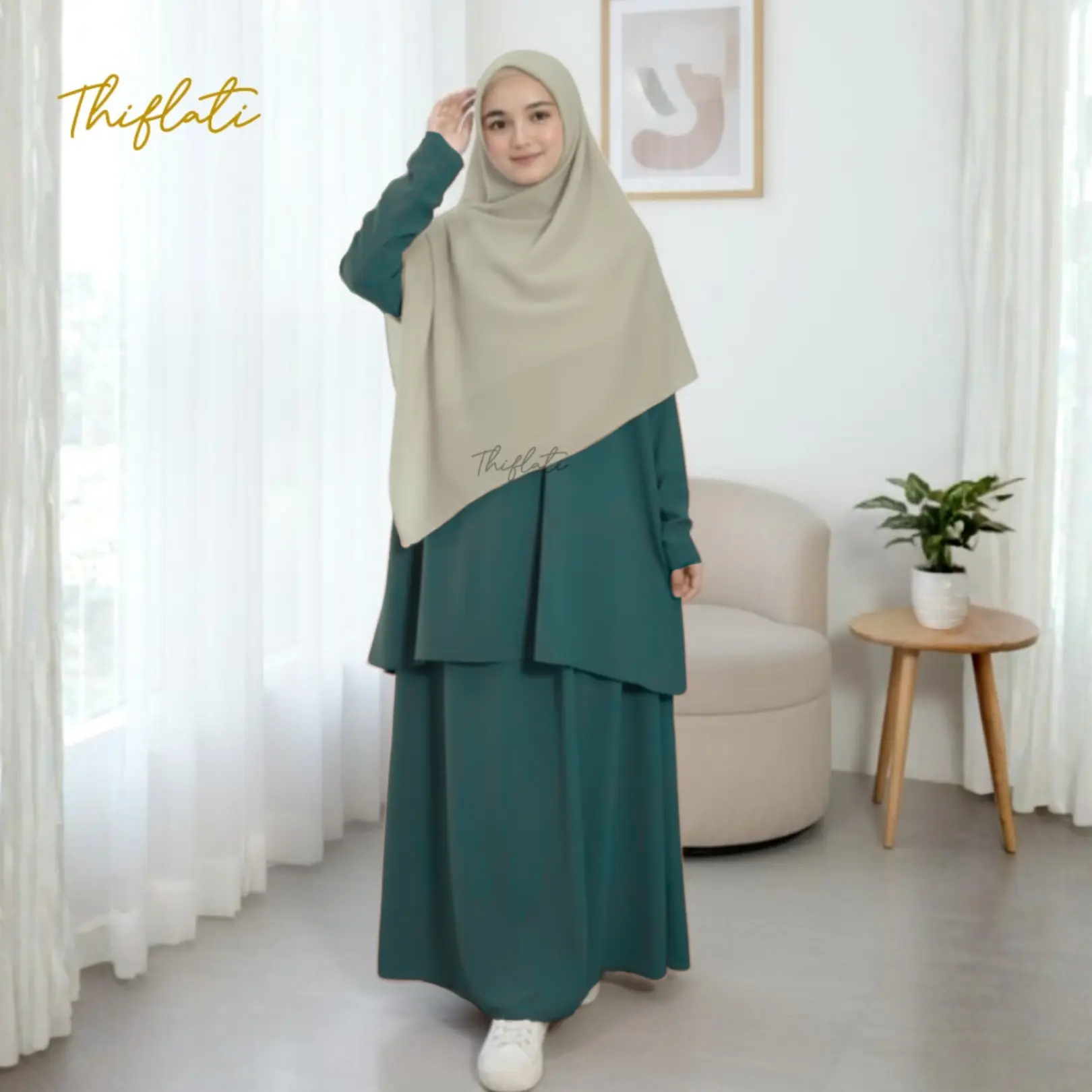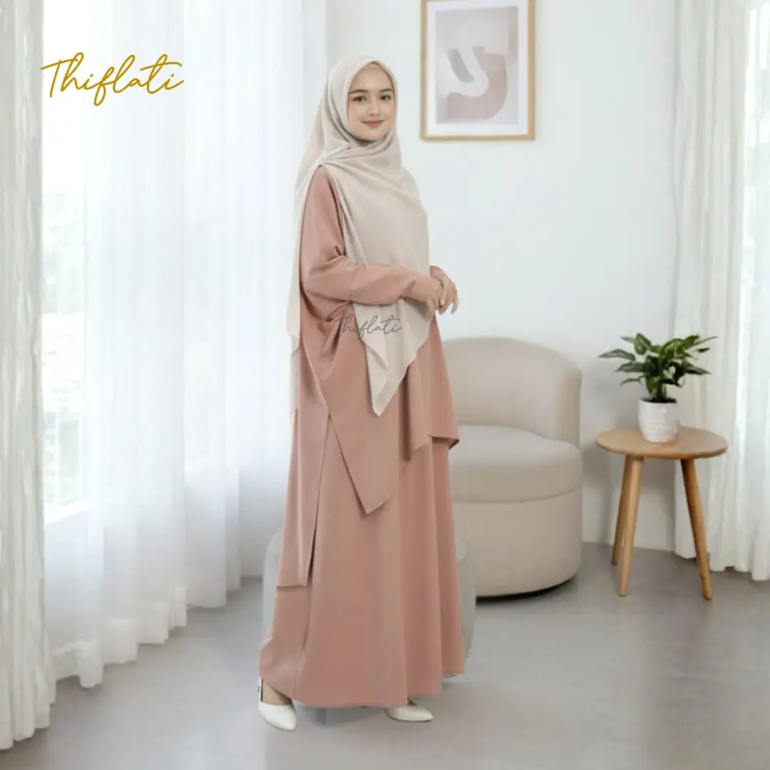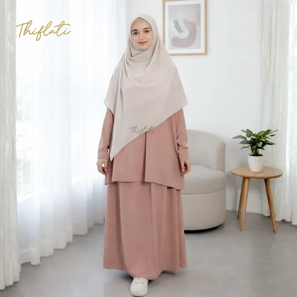 Thiflati One Set OOTD Berhijab One Set Syar'i Aqeela Tunik Skrit Melayu Anti UV