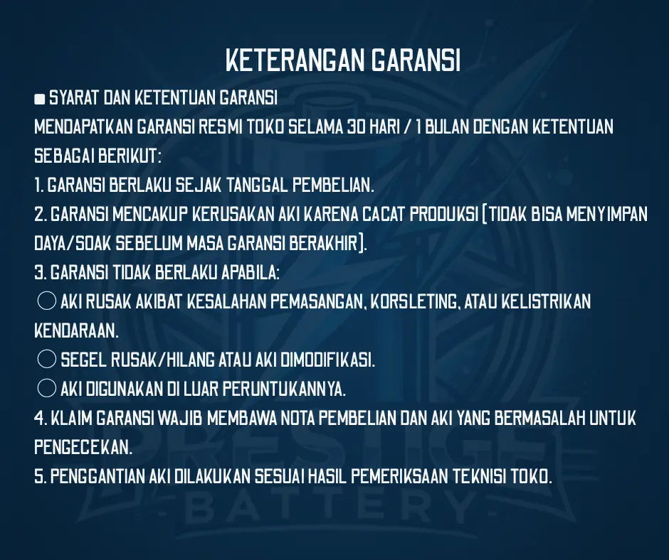 ·Jenis: Aki Kering / Maintenance Free (bebas perawatan)