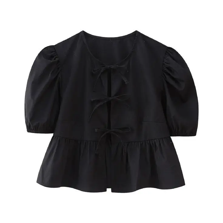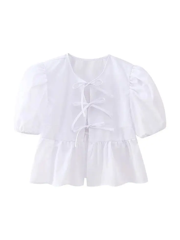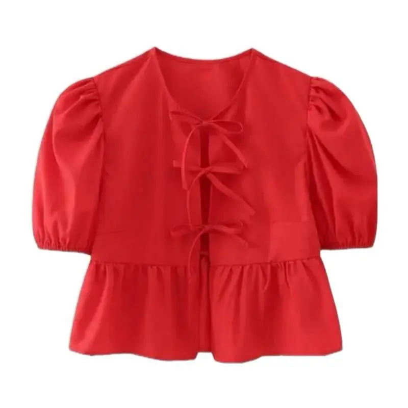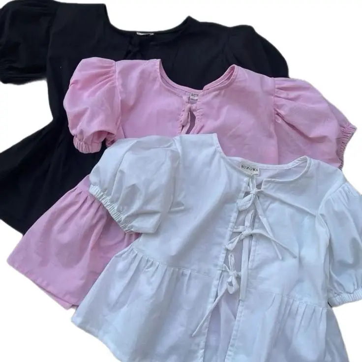 Atasan ini di desain khusus untuk anak perempuan dengan gaya feminim cantik di sertai motif polos memberikan kesan simple dan elegan. Model lengannya 3/4 yang menyerupai lengan model lampion, dan adapun 3 pita cantik di bagian depan menambah aksen manis dan feminim, bagian bawah di hiasi dengan detail ruffle memberikan siluet mengembang dan sangat lucu saat di gunakan.