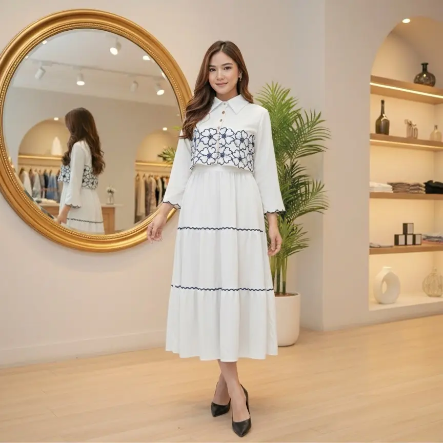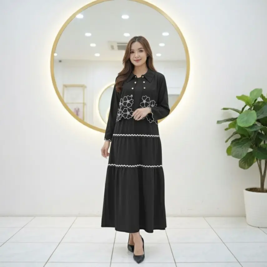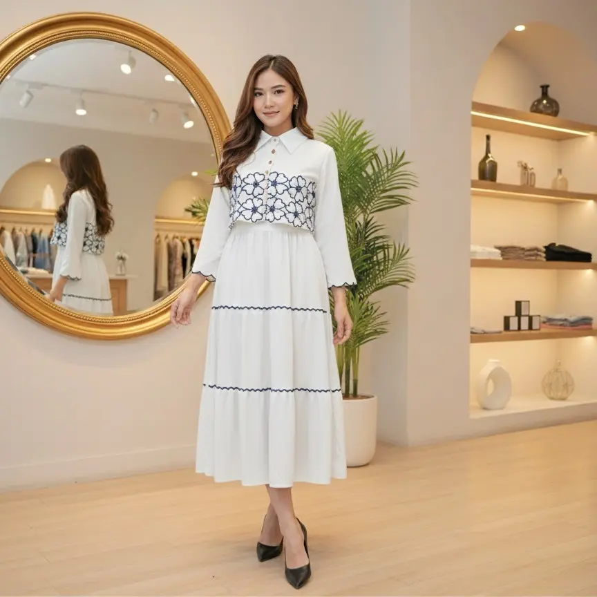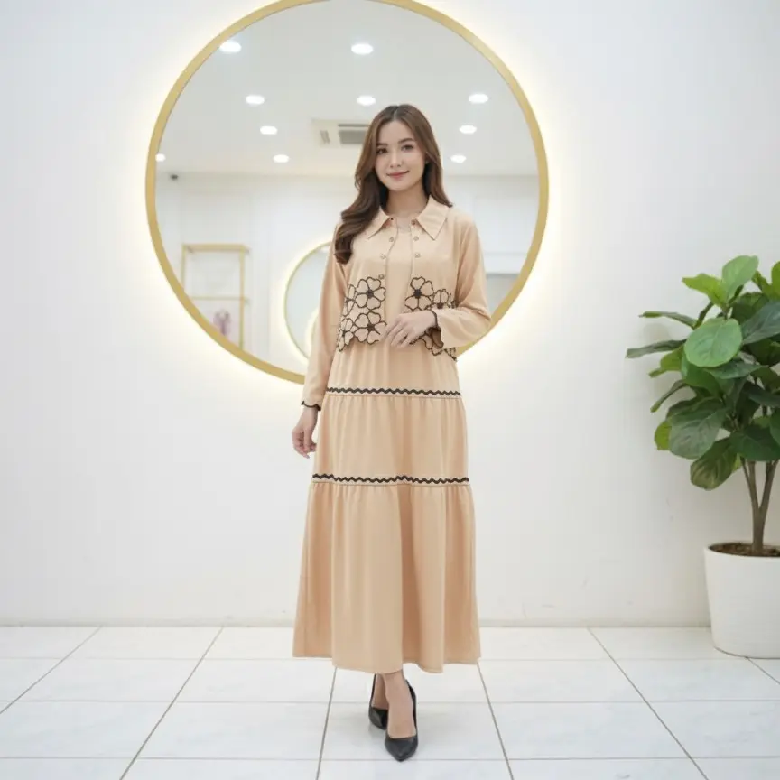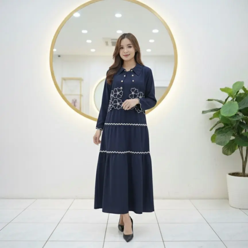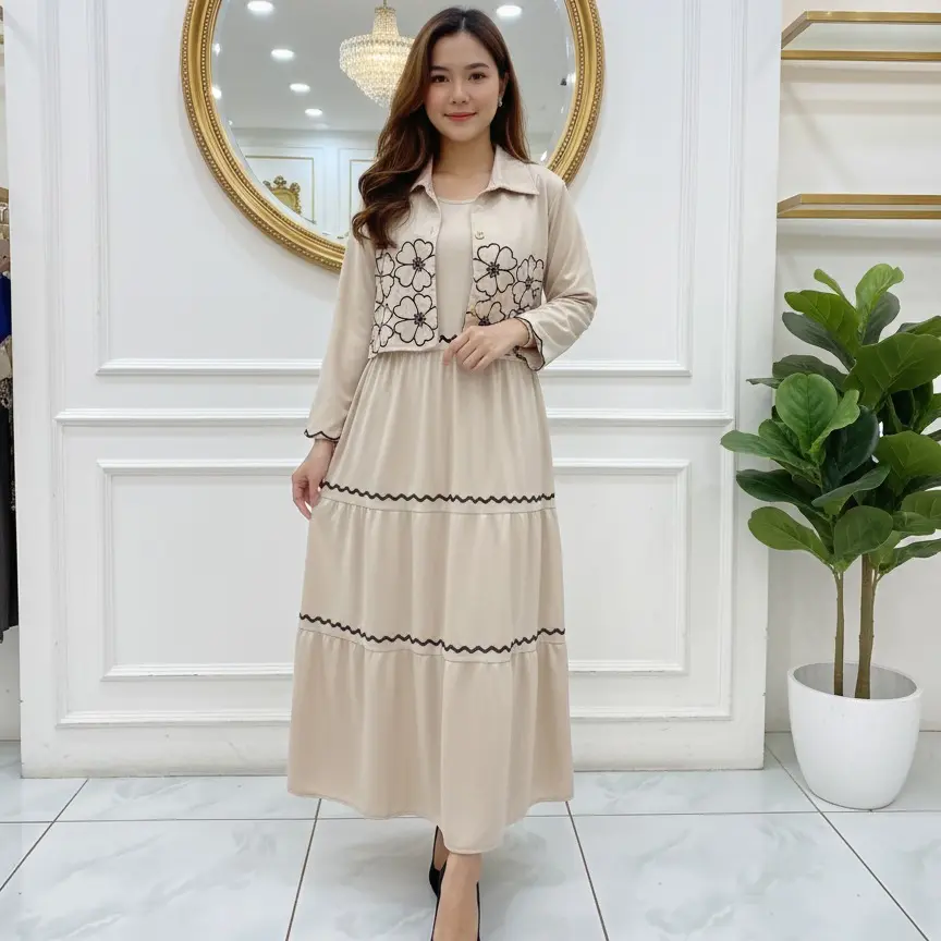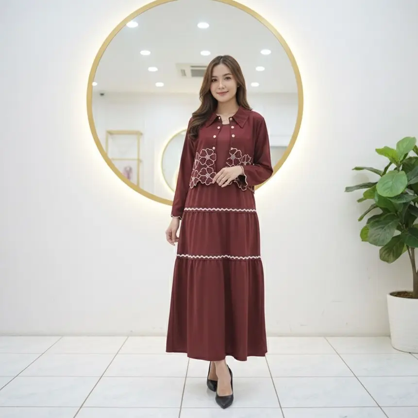 5. SHERINA DRESS 2 IN 1 FULL MOTIF BORDIR / DRESS CASUAL WANITA / DRESS 2 IN 1 DALAMAN DRESS DAN CARDIGAN