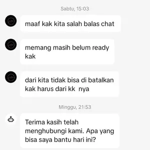 Terlalu banyak alasan, anda sendiri yg chat kosong, diminta batalin aja bilang salah chat eh pas dtg barang yg dikirim tidak sesuai pesanan
